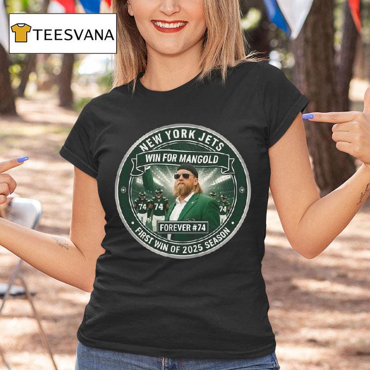 Chic comfort, all day with Nick Mangold New York Jets Win For Mangold Forever #74 First Win Of 2025 Season Shirt, in a momentous victory for the New York Jets, Nick Mangold led his team to their first win of the 2025 season. As fans proudly wear their #74 “Forever” shirts, the legacy of Mangold, a former Jet legend, lives on in the team’s triumphant return to glory.