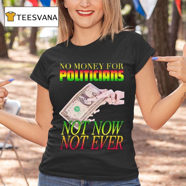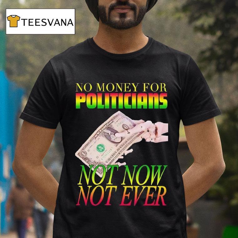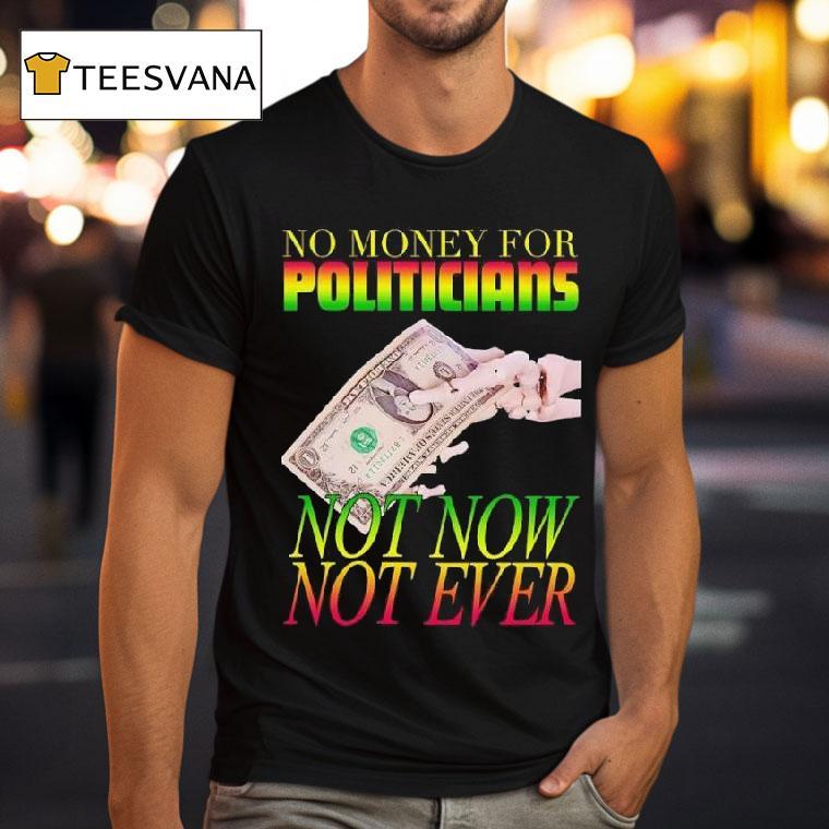 Effortlessly cool with No Money For Politicians Not Now Not Ever Dollar Bill Shirt, as political campaigns become more expensive, the question of money in politics continues to plague our democratic process. But what if we took a different approach? A new t-shirt design boldly proclaims, “No Money For Politicians, Not Now, Not Ever” in a reminder of the dangers of corporate influence.
