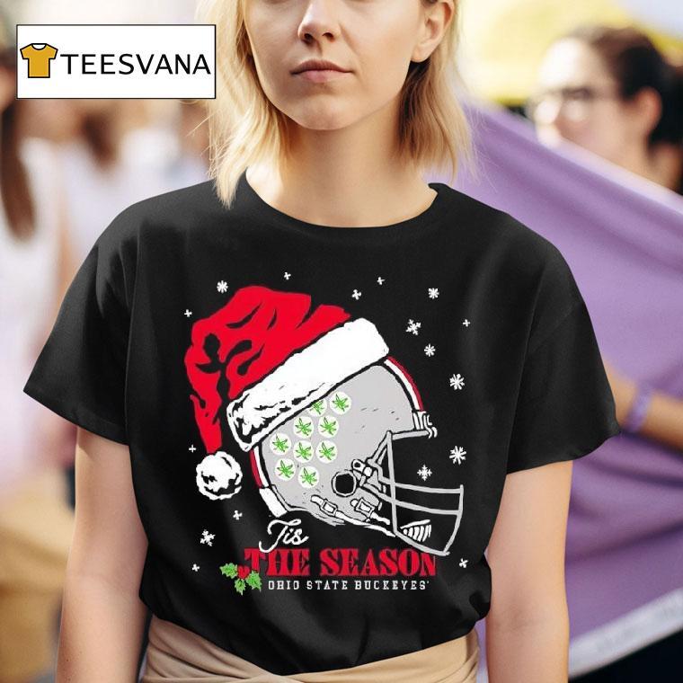 Everyday luxury, casual charm with Ohio State Buckeyes Football Santa Helmet Tis The Season Shirt, get ready to spread holiday cheer with the new Ohio State Buckeyes Football Santa Helmet Tis The Season shirt. Perfect for any Buckeyes fan, this shirt features a festive design with the iconic football helmet adorned in Santa’s signature colors. Show off your team spirit this season in style!