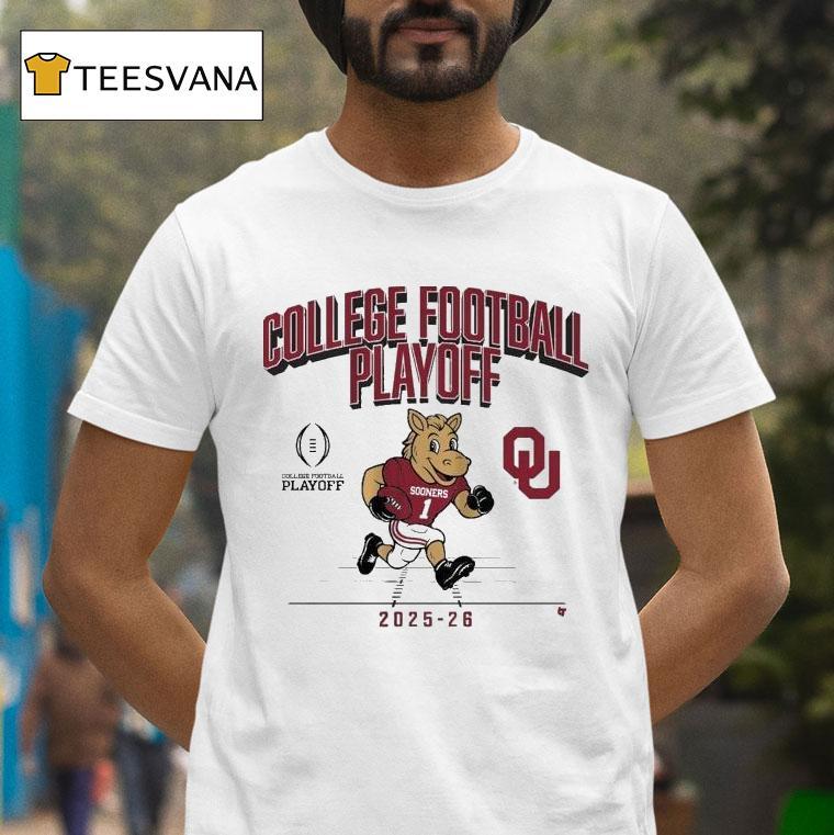 Casual chic, every day with Oklahoma Sooners 2025 2026 College Football Playoff Mascot Shirt, gear up for the thrilling future of Oklahoma Sooners football with the 2025-2026 College Football Playoff Mascot Shirt. Show your team pride and support for the powerhouse Sooners as they battle for a spot in the playoffs. Get ready for an exciting season ahead!