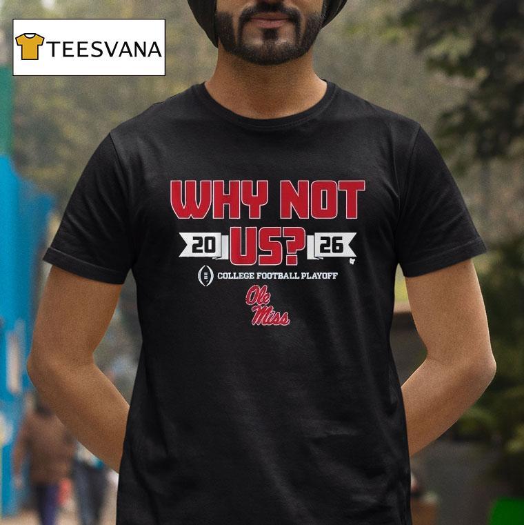 Casual chic, timeless appeal with Ole Miss Rebels Cfp Why Not Us 2026 Shirt, attention all Ole Miss Rebels fans! Show your support for the 2026 College Football Playoff with our exclusive “Why Not Us” shirt. Let’s rally behind our team and make a statement that we believe they have what it takes to bring home the championship. Get your shirt now and join the rebellion!