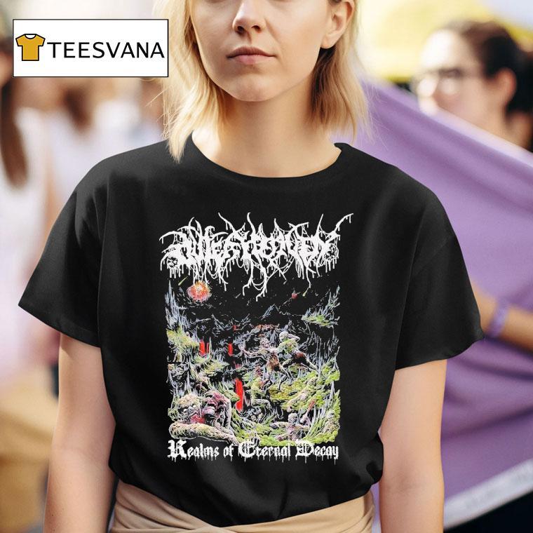 Staple piece, endless possibilities with Outer Heaven Realms Of Eternal Decay Shirt, welcome to the dark and mysterious world of Outer Heaven, where decay and darkness reign supreme. Embrace the eerie atmosphere and show your allegiance to this realm with our new Realms of Eternal Decay shirt. Wear it with pride as you journey into the unknown.