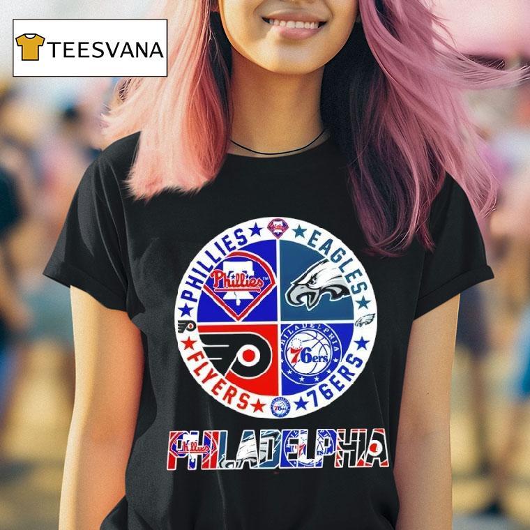 Casual comfort, chic look with Philadelphia Teams Philadelphia Phillies X Philadelphia Eagles X Philadelphia Flyers X Philadelphia 76ers Shirt, get ready to show your support for the top Philadelphia teams with these exclusive shirts featuring the Philadelphia Phillies, Philadelphia Eagles, Philadelphia Flyers, and Philadelphia 76ers. Whether you’re a die-hard fan or just love the city, these shirts are a must-have for any sports enthusiast.
