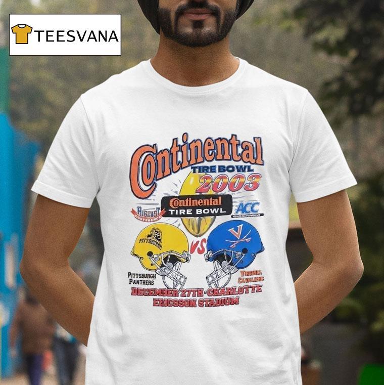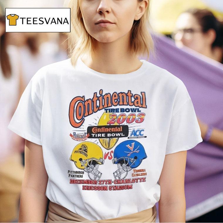 Unmatched comfort, chic look with Pittsburgh Panthers Vs Virginia Cavaliers Continental Tire Bowl 2003 Vintage Shirt, in the showdown between the Pittsburgh Panthers and Virginia Cavaliers at the 2003 Continental Tire Bowl, one item stands out as a timeless piece of memorabilia – the vintage shirt. Relive the excitement and nostalgia of this epic game with a limited edition commemorative shirt.