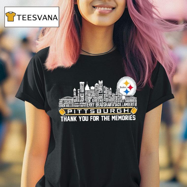 Effortless style, pure simplicity with Pittsburgh Slers Logo And A Skyline Graphic Names Players Shirt,