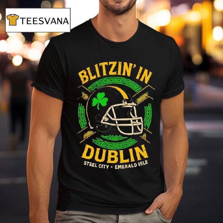 Effortless fashion, endless comfort with Pittsburgh Slers X Ireland Blitzin’ In Dublin Sl City Emerald Isle Helmet Shirt, welcome to the ultimate Pittsburgh Steelers fan experience! Get ready to show your love for the Black and Gold while representing the Steel City in style. The Pittsburgh Slers x Ireland Blitzin’ In Dublin collab brings the iconic Steelers helmet to the vibrant streets of the Emerald Isle on this must-have shirt.
