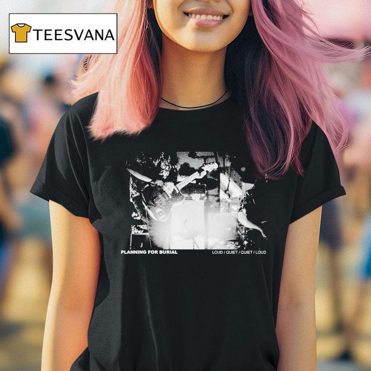 Everyday luxury, casual charm with Planning For Burial Loud Quiet Shirt, “Looking for a garment that reflects the contrasting tones of Planning for Burial’s music? The Loud Quiet shirt captures the hauntingly beautiful essence of the band’s sound, with a bold design that pays homage to their dynamic style. Get ready to rock in this versatile and edgy shirt.”