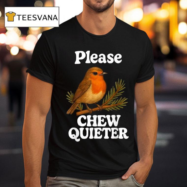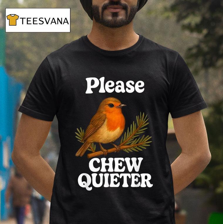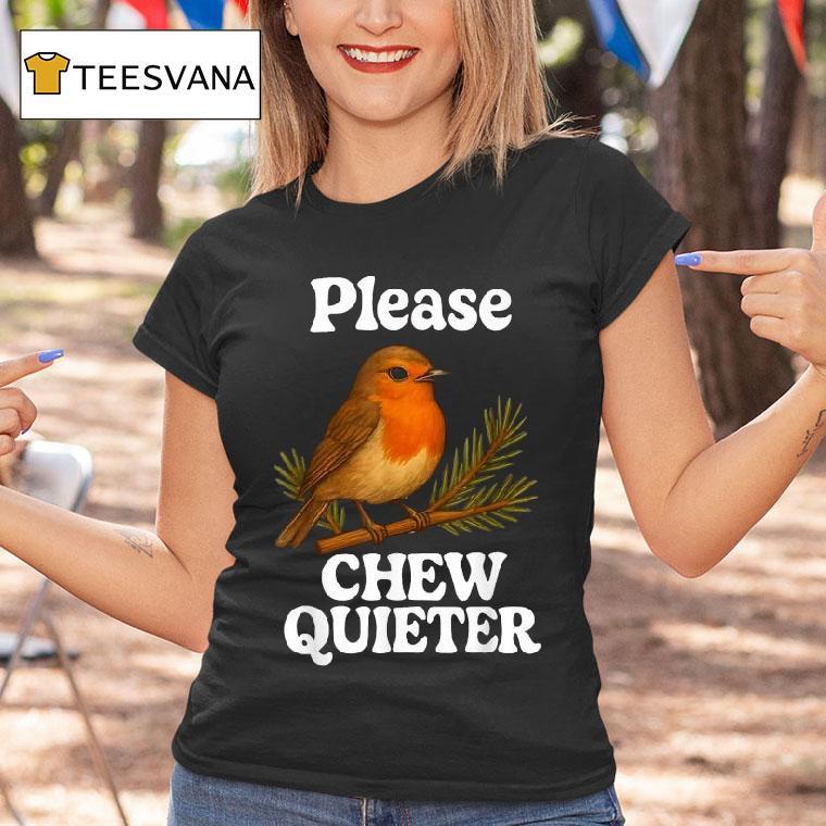 Relaxed elegance, everyday with Please Chew Quieter Bird Shirt, are you tired of noisy eating? Look no further! Our Please Chew Quieter Bird Shirt is the perfect way to politely remind those around you to keep their chewing volume down. With a fun bird design, you’ll make a statement while keeping the peace.