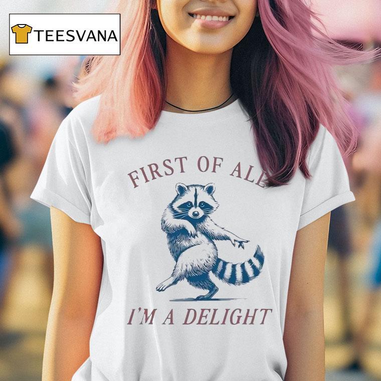 Casual sophistication, always in style with Racoon First Of All I’m A Delight Shirt, looking for a playful and fun addition to your wardrobe? Look no further than the Racoon First Of All I’m A Delight shirt. With its adorable raccoon design and comfortable fabric, it’s sure to be your new favorite go-to. So go ahead, indulge in some raccoon cuteness!