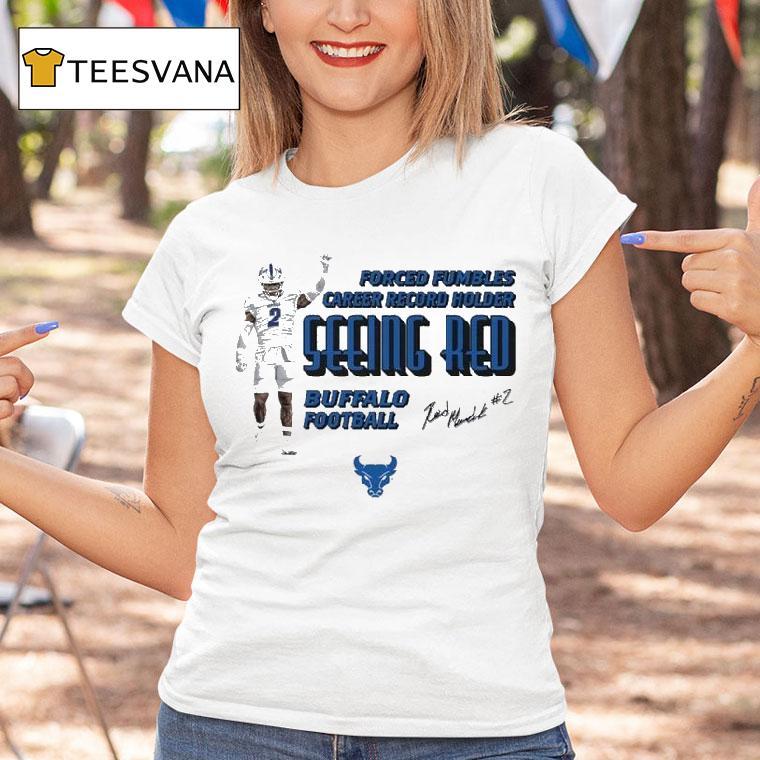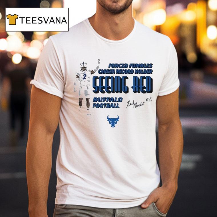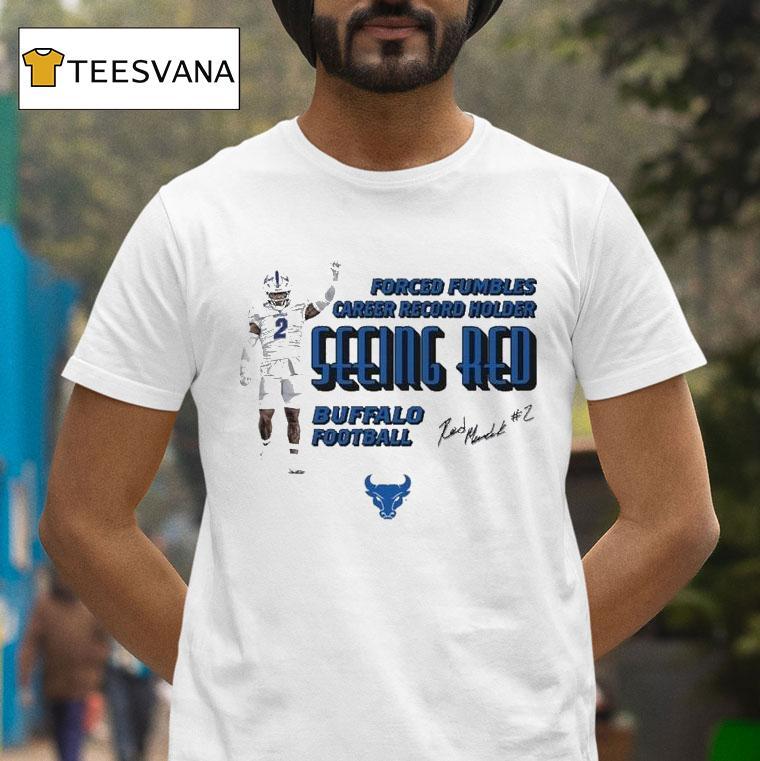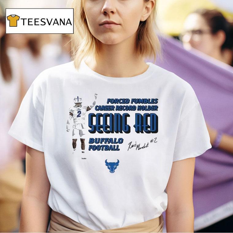 Chic simplicity, everyday elegance with Red Murdock Seeing Red Forced Fumbles Career Record Holder Buffalo Bulls Signature #2 Shirt, red Murdock is a name that is synonymous with hard-hitting defense and record-setting performance. As a former standout for the Buffalo Bulls, his name remains a staple in the college football world. With a career record of forced fumbles and a signature #2 shirt, Murdock continues to inspire and leave a mark on the field.