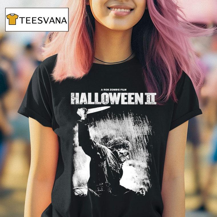 Style that stands out with Rob Zombie’s Halloween Ii Shirt, celebrate the iconic horror film with Rob Zombie’s Halloween II shirt. Featuring the terrifying image of Michael Myers and the film’s title in bold font, this shirt is perfect for any fan of the franchise. Get ready to show off your love for all things Halloween with this must-have shirt.