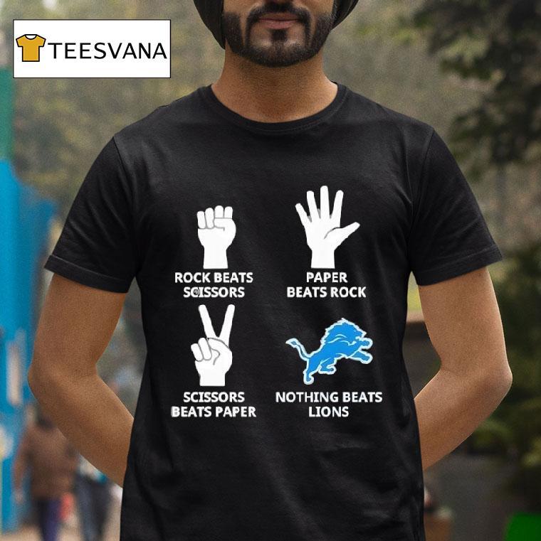 Chic simplicity, everyday elegance with Rock Beats Scissors V Paper Beats Rock Scissors Beats Paper Nothing Beats Detroit Lions Shirt, scissors beat paper is a classic game, but in the battle between Detroit Lions gear, there’s a clear winner. The fierce design and dedication of the Detroit Lions shirt is unmatched, even by the mighty rock or versatile paper. Let’s explore why this shirt reigns supreme.