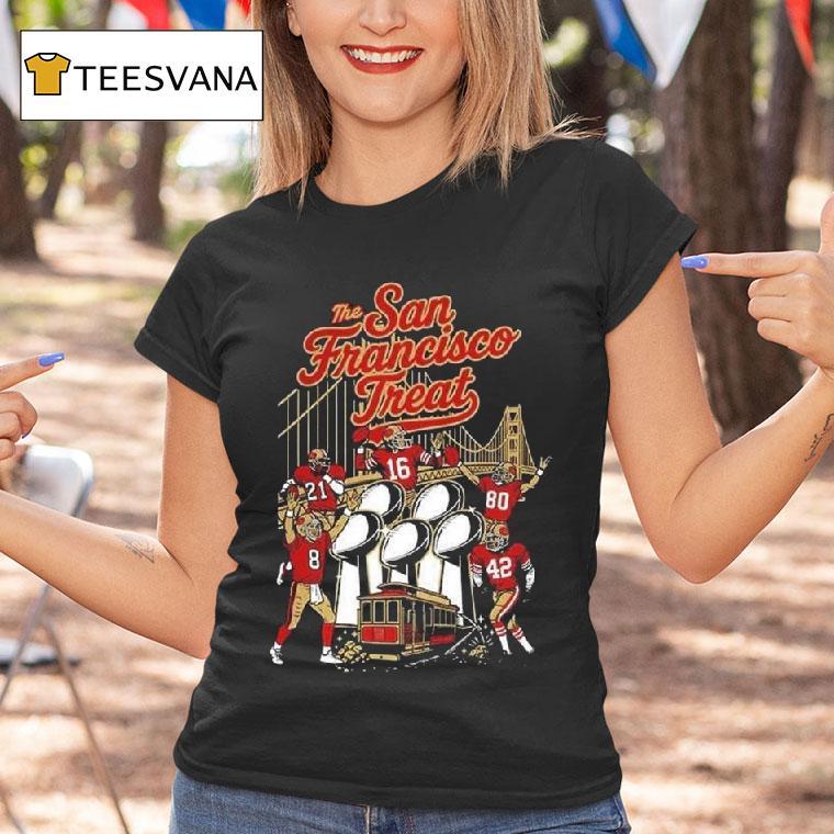 Classic tee, modern twist with San Francisco 49ers The San Francisco Treat Shirt, get ready to root for your favorite NFL team in style with the San Francisco Treat shirt! Show off your support for the San Francisco 49ers while sporting this comfortable and stylish shirt that is a must-have for every fan. Don’t miss out on this ultimate fan gear.
