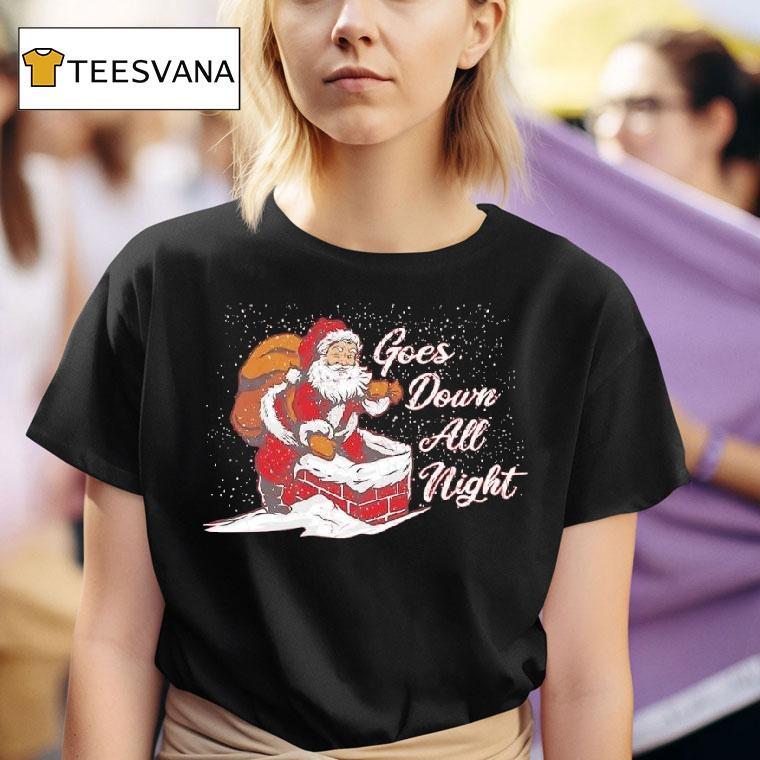 Casual cool, anytime chic with Santa Claus Climbing Down Chimney Goes Down All Night Christmas Shirt, this festive Christmas shirt features Santa Claus climbing down a chimney, ready to deliver gifts all night long. With a cheerful design and jolly colors, this shirt is perfect for spreading holiday cheer and celebrating the magical tradition of Santa’s arrival on Christmas Eve.