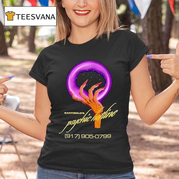 The perfect blank canvas with Santigold’s Psychic Hotline Shirt, “Unleash your inner mystic with Santigold’s Psychic Hotline Shirt. This limited edition piece combines bold graphics with a touch of the supernatural, showcasing the singer’s unique style and love for the unknown. Embrace the unknown and make a statement with this one-of-a-kind fashion piece.”