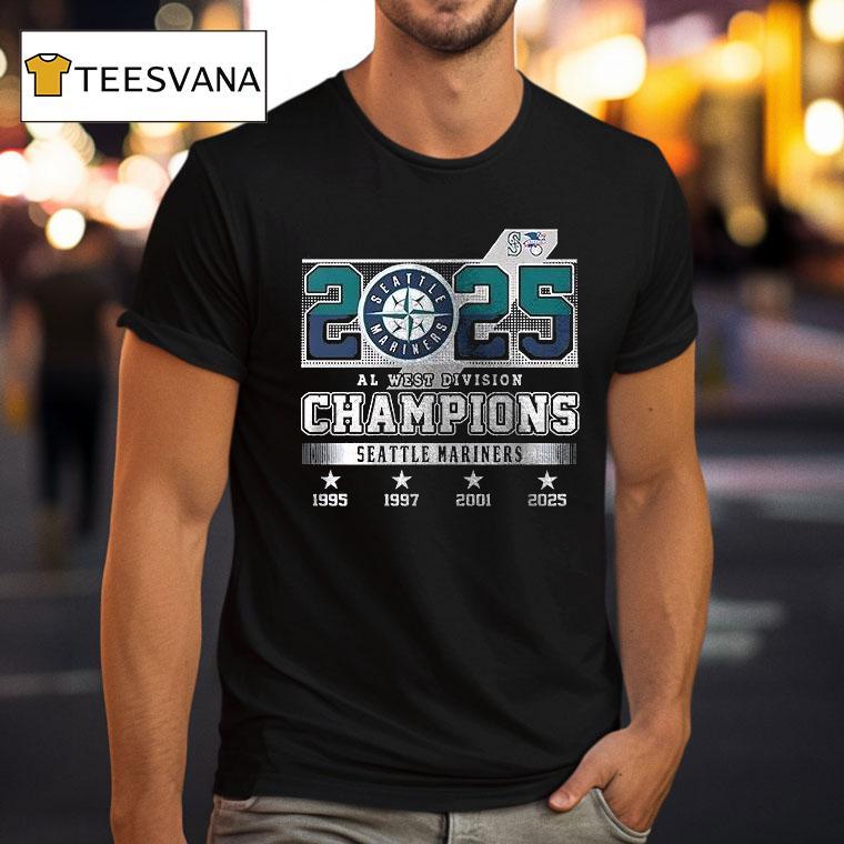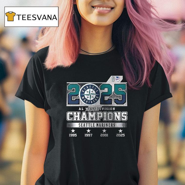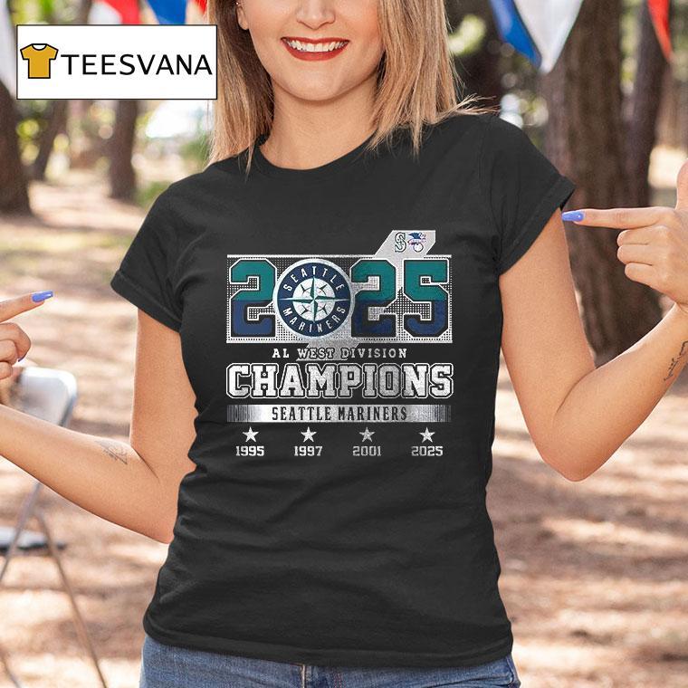 Chic comfort, all day with Seattle Mariners 2025 Al West Champions Name Roster Shirt, in the year 2025, the Seattle Mariners have once again claimed the title of Al West Champions. As fans celebrate their victory, the team proudly dons the new roster shirt featuring their star players such as Kyle Lewis and Julio Rodríguez. Show your support for the Mariners with the ultimate fan gear.