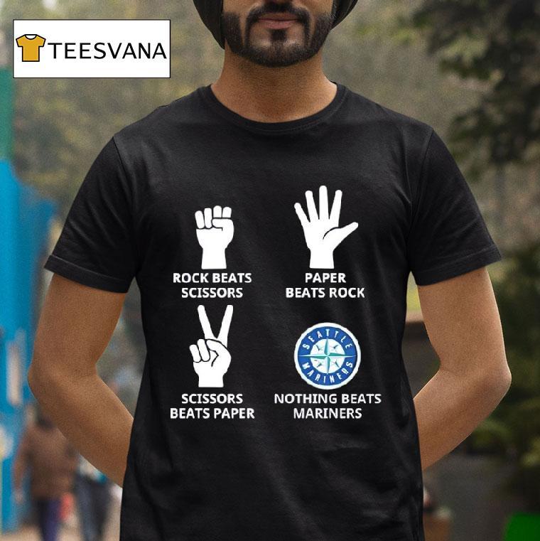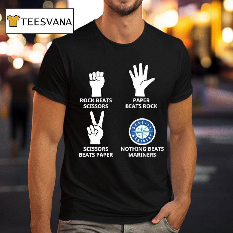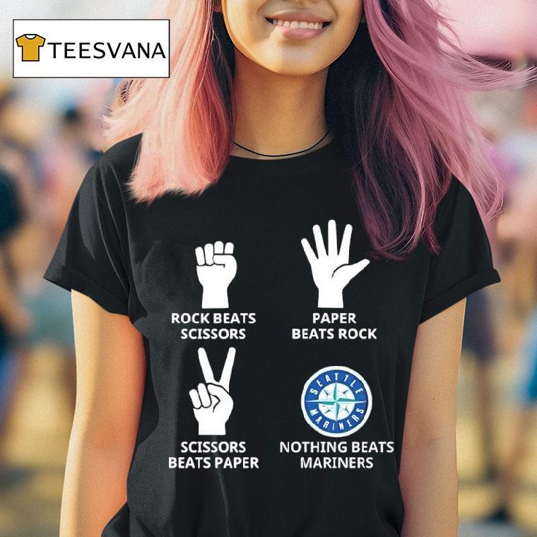 Casual elegance, always with Seattle Mariners Nothing Beats Rock Beats Scissors Paper Beats Rock Scissors Beats Paper Shirt, get ready to show off your love for the Seattle Mariners with a unique shirt that combines your favorite sport with a classic game. Nothing beats the excitement of wearing a Seattle Mariners Rock Beats Scissors Paper shirt, perfect for any die-hard fan.