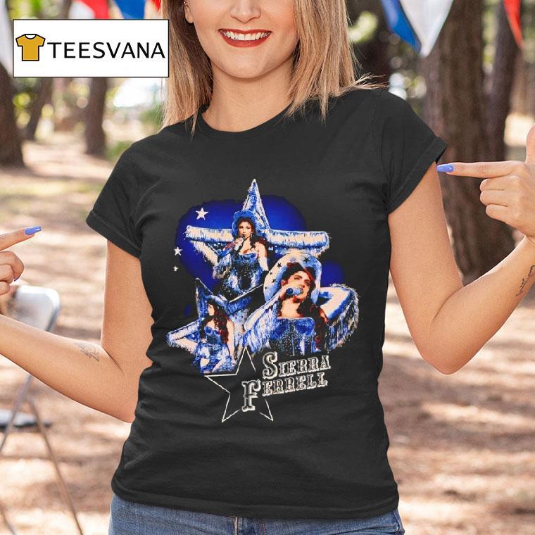 Chic simplicity, maximum comfort with Sierra Ferrell Pose Star Photo Shirt, introducing the latest internet sensation, Sierra Ferrell, the rising music star who is taking the world by storm with her soulful voice and vintage style. In her iconic pose, flaunting a star-printed shirt, she is captivating hearts and inspiring fans with her timeless photographs.