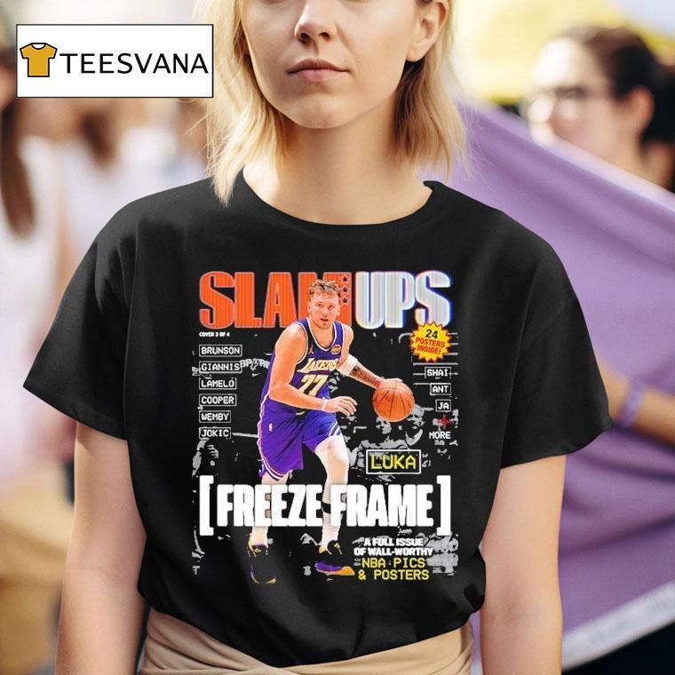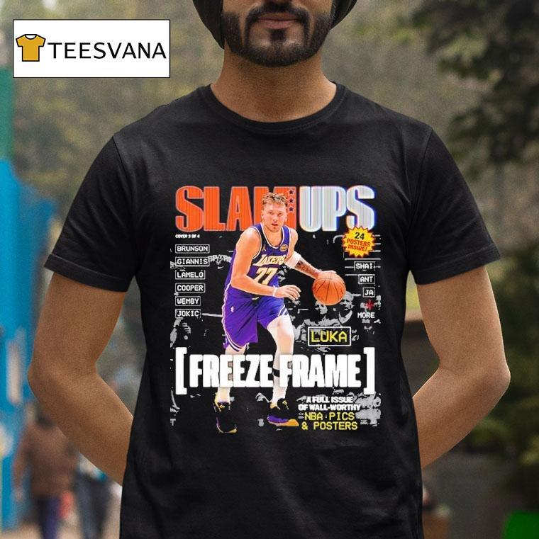Your fashion canvas with Slam Ups Luka Doncic Freeze Frame A Full Issue Of Wall Worthy Shirt, step onto the court and get ready to be mesmerized by the electrifying talent of NBA’s rising star, Luka Doncic. Freeze the moment with a full-issue of Wall Worthy shirt, designed to capture the explosive slam ups of this basketball sensation. Don’t miss out on owning a piece of history!