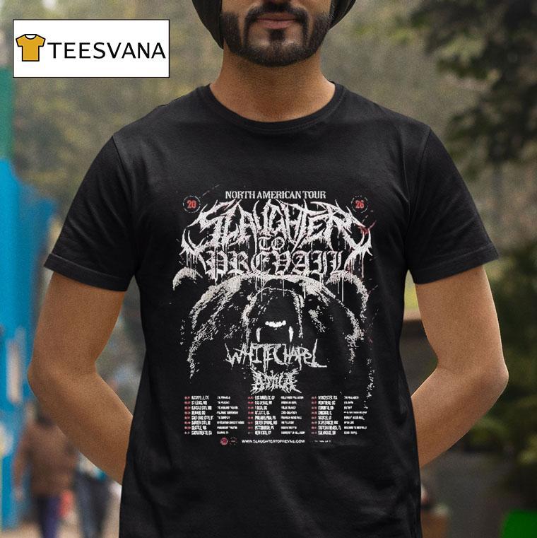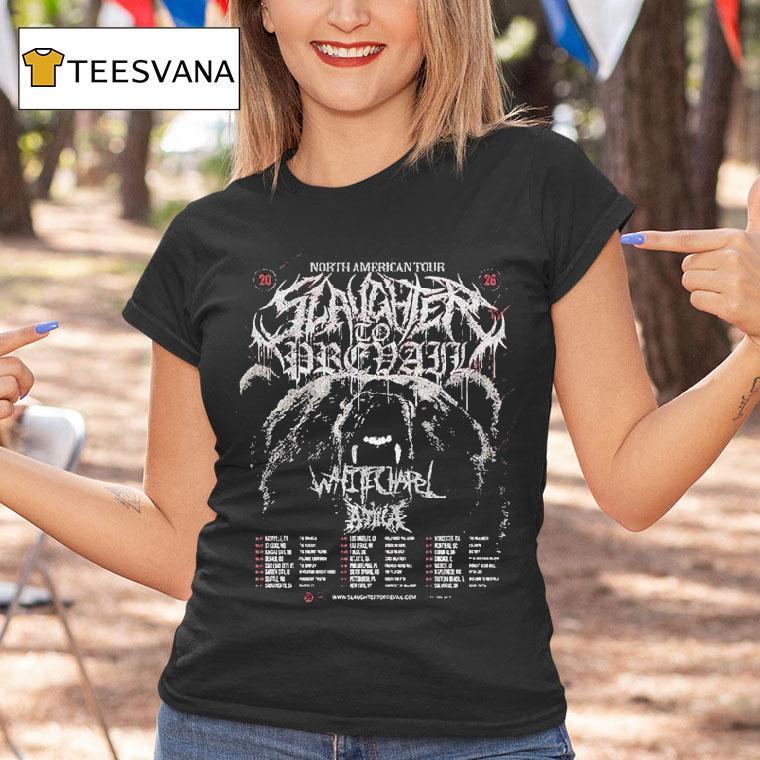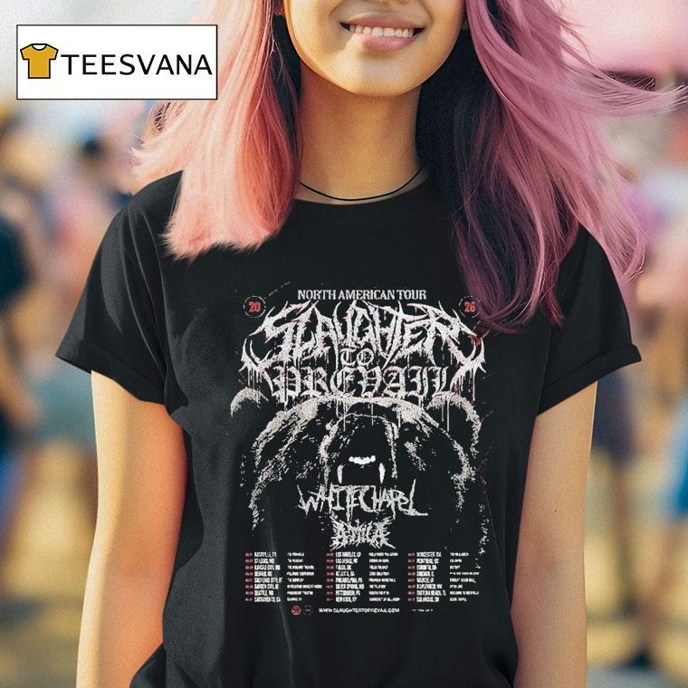 Comfortable fashion choice with Slaughter To Prevail X Whitechapel North America 2026 Tour Dates Bear Shirt, get ready metalheads, because the highly anticipated Slaughter To Prevail x Whitechapel North America 2026 Tour is coming to a city near you! Join these heavy-hitting bands as they rock the stage in their limited edition bear shirt merchandise. Don’t miss out on this epic tour!