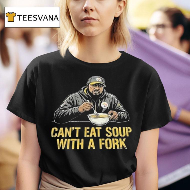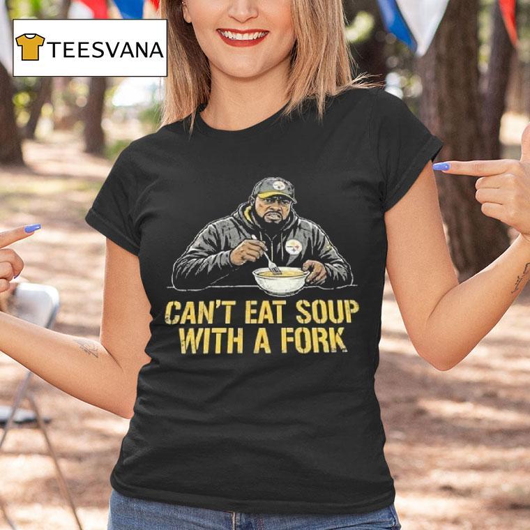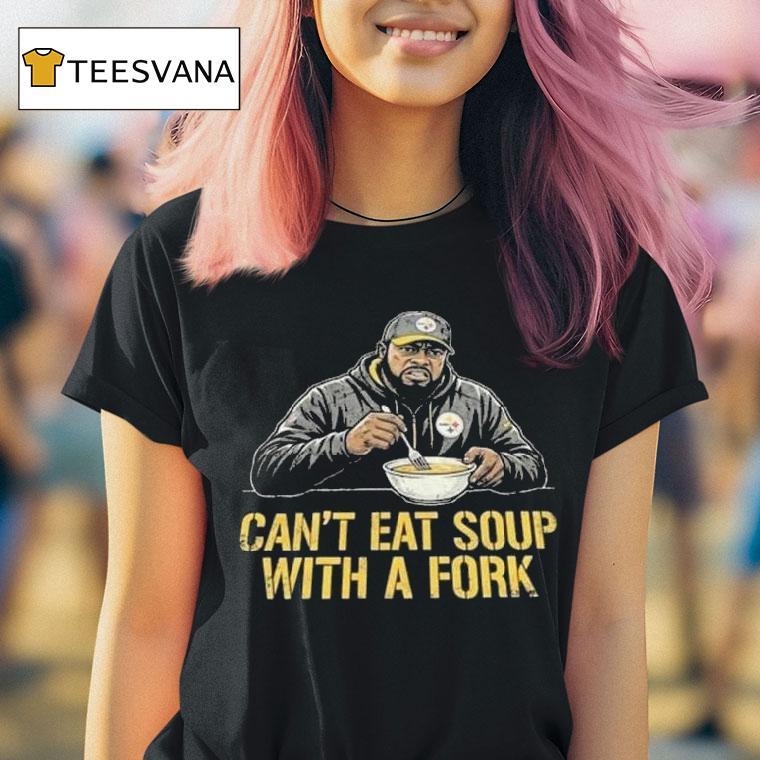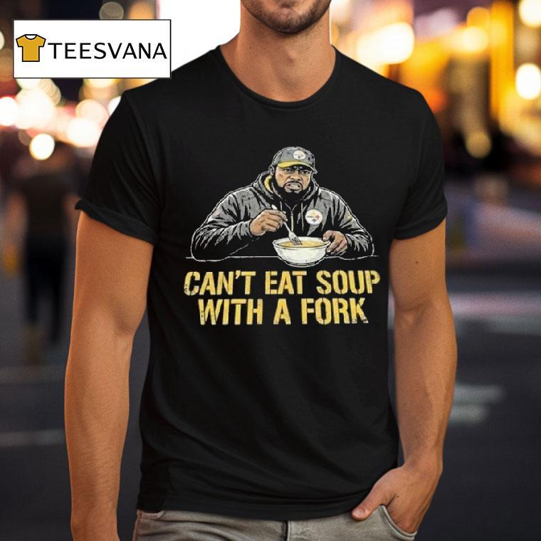 Classic charm, modern edge with Slers Coach Mike Tomlin Can’t Eat Soup With A Fork Shirt, as the iconic Pittsburgh Steelers head coach, Mike Tomlin has led his team to numerous victories and captured the hearts of fans everywhere. But one thing he can’t seem to do is eat soup with a fork, as hilariously depicted on the popular Slers Coach Mike Tomlin Can’t Eat Soup With A Fork shirt.