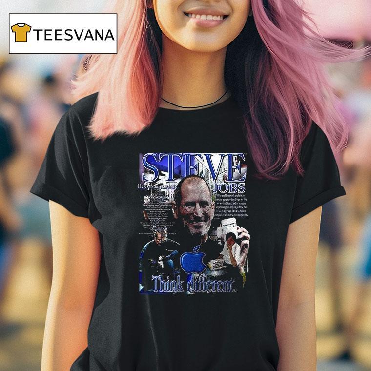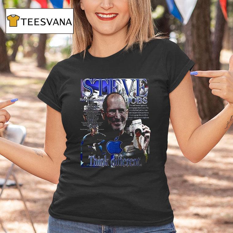 Your style, your tee with Steve Jobs Think Different Heres To The Crazy Ones Apple Logo Shirt, in a world filled with conformity, one man dared to think different. Steve Jobs, the visionary behind Apple, inspired others to embrace their uniqueness through his iconic “Think Different” campaign. Join the movement and celebrate the unconventional with the iconic Apple logo shirt.