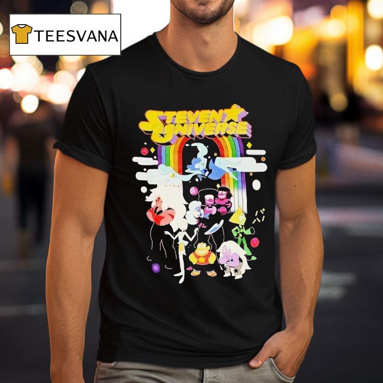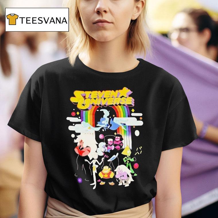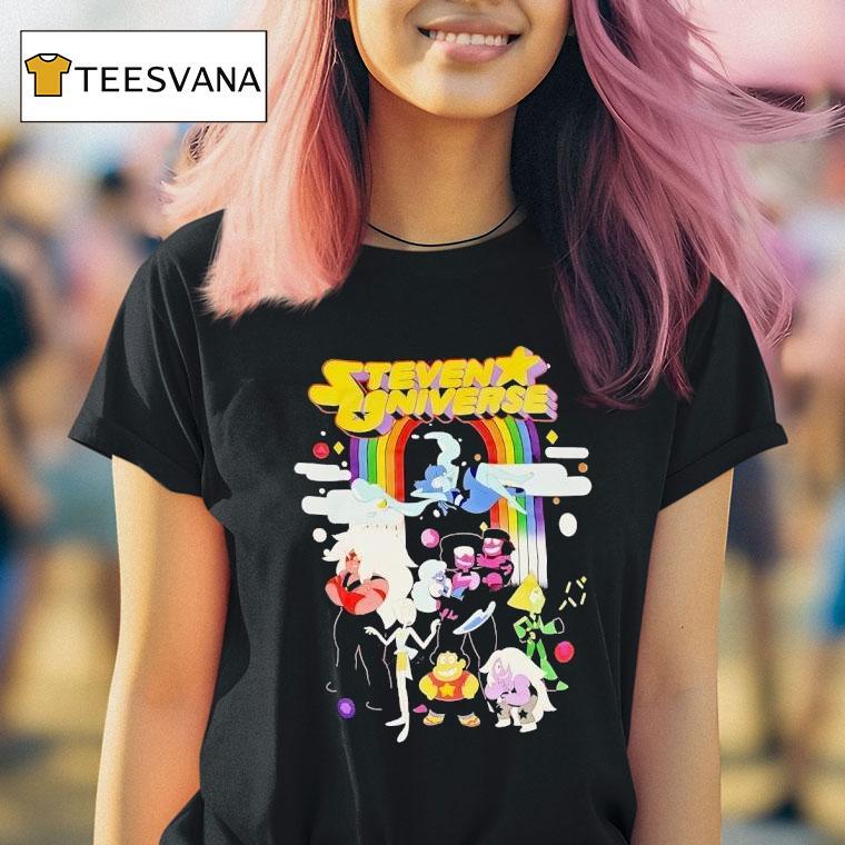 Chic and comfortable with Steven Universe Rainbow Characters Shirt, get ready to embrace the colorful world of Steven Universe with this must-have Rainbow Characters Shirt. Featuring all your favorite characters in a vibrant rainbow design, this shirt is perfect for any fan looking to show off their love for this beloved animated series.