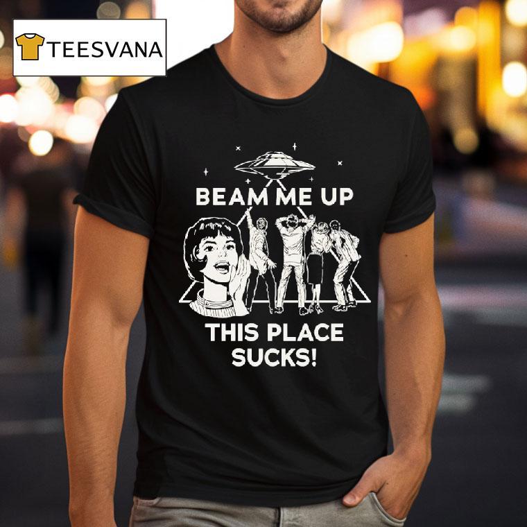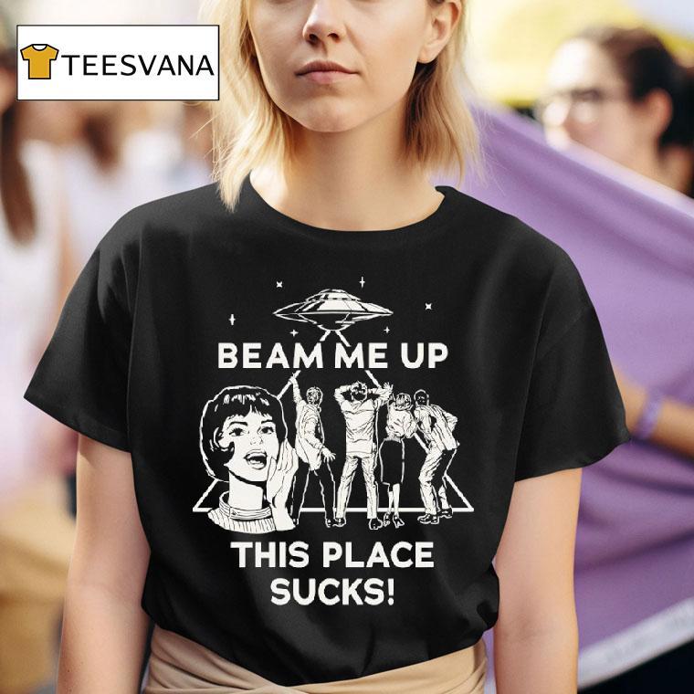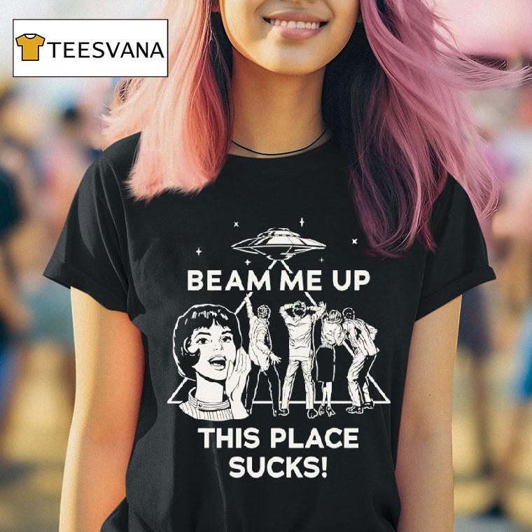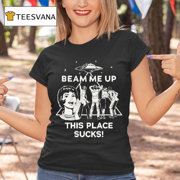 Staple piece, endless possibilities with Stranger Things Beam Me Up This Place Sucks Graphic Shirt, step into the upside down with this Stranger Things inspired graphic shirt. Featuring the iconic quote “Beam Me Up, This Place Sucks”, this shirt is perfect for any fan of the hit show. Embrace the supernatural and show off your love for Stranger Things with this unique design.