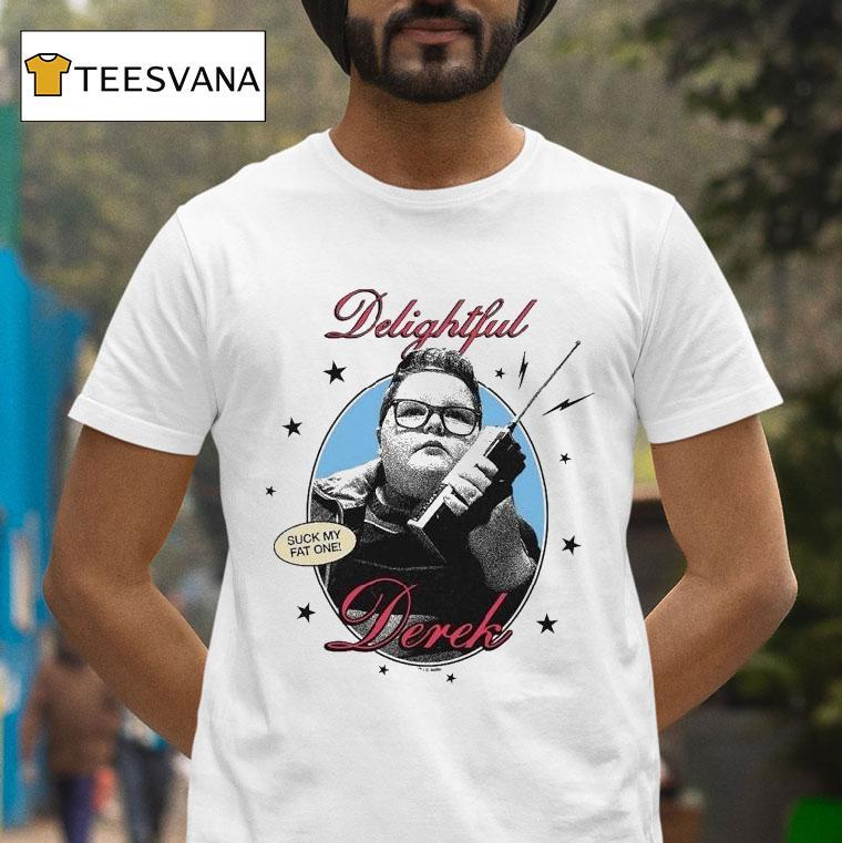Versatile fashion at its best with Stranger Things Derek Delightful Suck My Fat One Shirt, the beloved Netflix series, Stranger Things, has captivated audiences with its thrilling plot and lovable characters. And now, fans can show off their love for the show with the new Derek Delightful “Suck My Fat One” shirt, paying homage to one of its most iconic and hilarious moments.