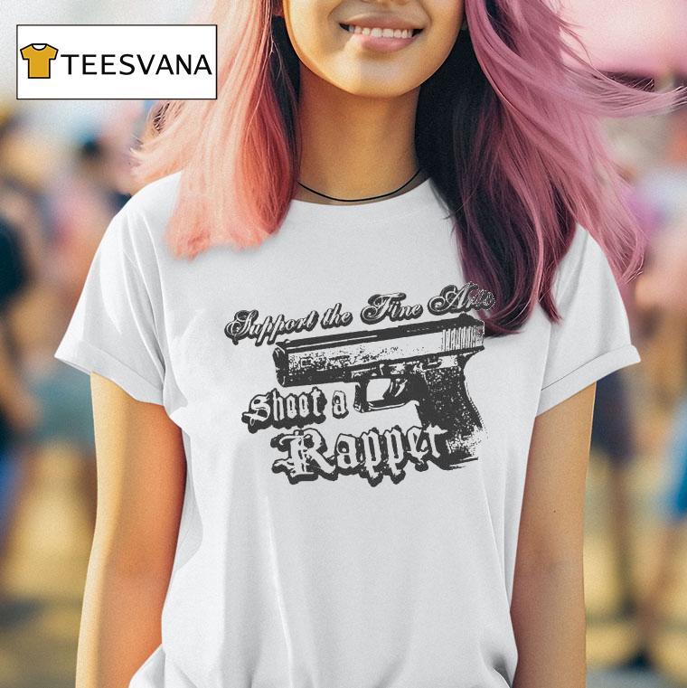 Everyday ease, endless style with Support The Fine Arts Shoot A Rapper Shirt, attention all fashion-forward art enthusiasts! Introducing the latest way to show your support for the fine arts – the “Shoot A Rapper” shirt! This edgy and thought-provoking design aims to break boundaries and ignite conversations about the intersection of music and visual art. Get yours now and make a statement.