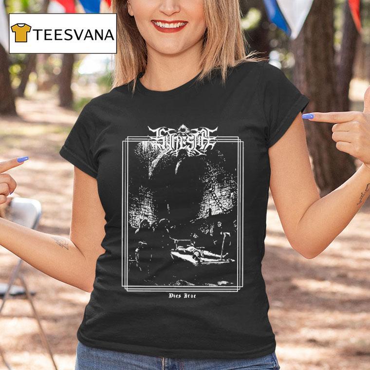 Wardrobe staple, endless style with Synestia Dies Irae Dark Dungeon Scene Black Metal Gothic Shirt, as the eerie sounds of black metal fill the air, the dark dungeon begins to take shape. The flickering candlelight casts eerie shadows on the walls, adorned with gothic symbols. A figure enters, wearing a synestia dies irae shirt, their presence invoking a sense of impending doom in this gothic scene.