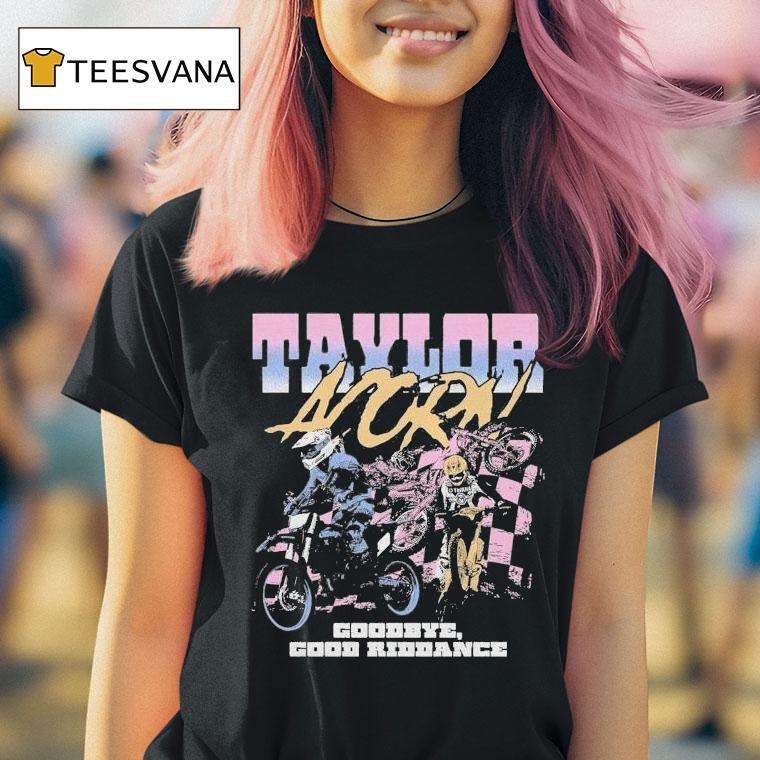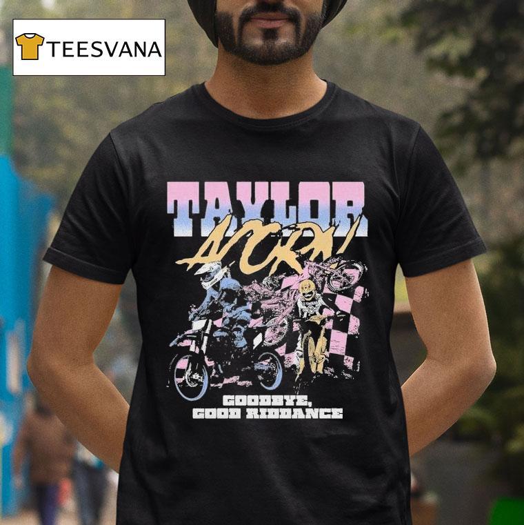 Effortless fashion statement with Taylor Acorn Goodbye, Good Riddance Dirt Bike Shirt, get ready to say goodbye to plain and boring t-shirts because Taylor Acorn has just released her new Goodbye, Good Riddance Dirt Bike Shirt. This trendy and unique shirt is perfect for all you dirt bike enthusiasts out there. Stand out in style with this must-have piece from Taylor Acorn’s collection.