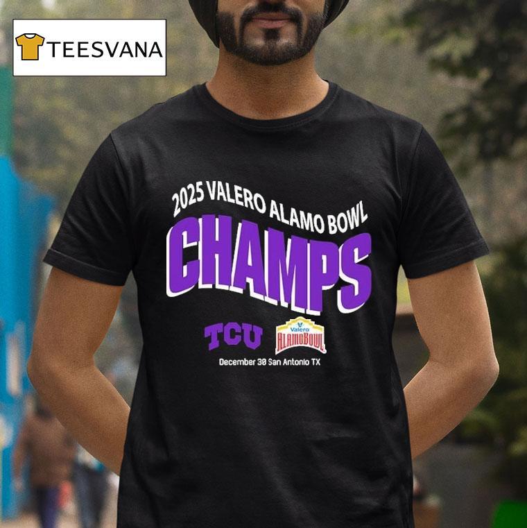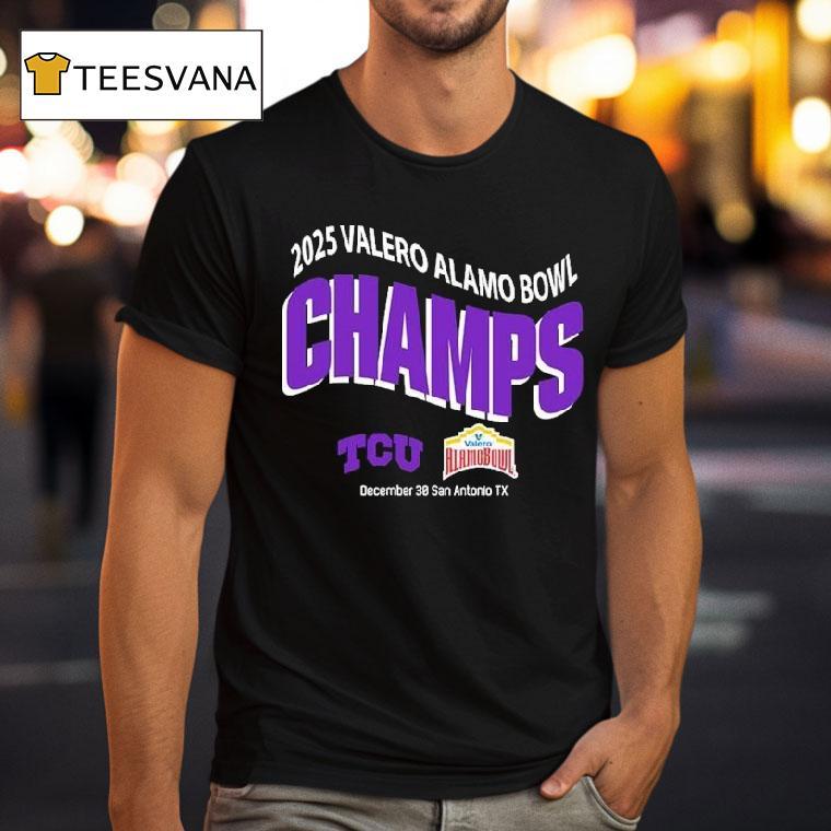 Style made simple with Tcu Horned Frogs 2025 Valero Alamo Bowl Champions On December 30 In San Antonio Tx Shirt, celebrate the TCU Horned Frogs’ triumph as the 2025 Valero Alamo Bowl Champions with this exclusive shirt! Featuring the team’s iconic logo and bold lettering, this limited edition collectible is a must-have for any die-hard fan. Show your support and relive the exciting victory in San Antonio, TX on December 30th!