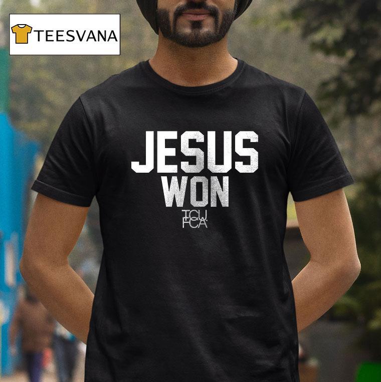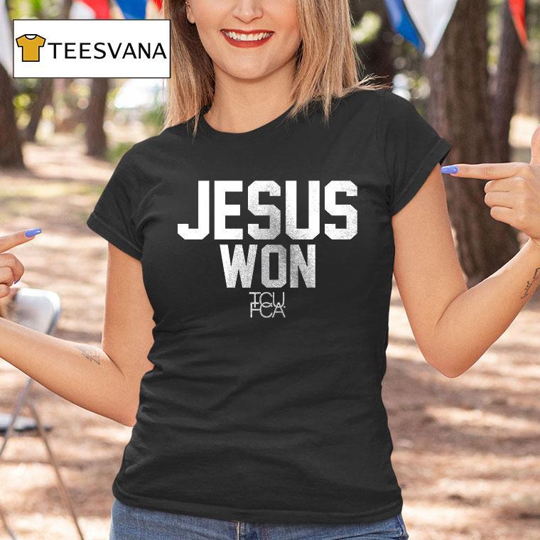 Everyday ease, endless style with Tcu Horned Frogs X Jesus Won Cross Logo Shirt, attention all sports fans! Get ready to show your love for the TCU Horned Frogs in a whole new way with the Jesus Won Cross Logo shirt. This unique and stylish shirt combines your passion for your favorite team with your faith in a bold and powerful design.