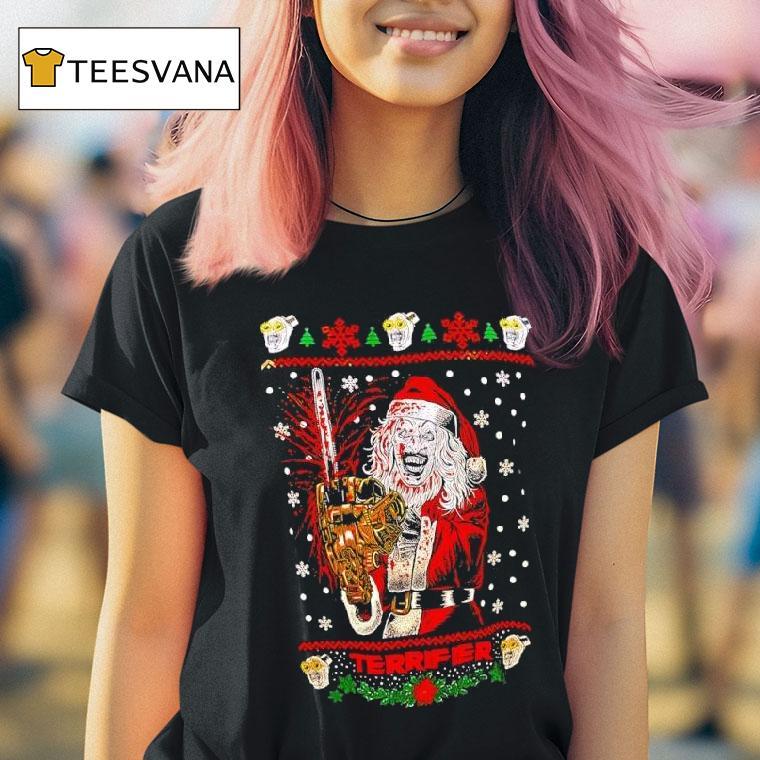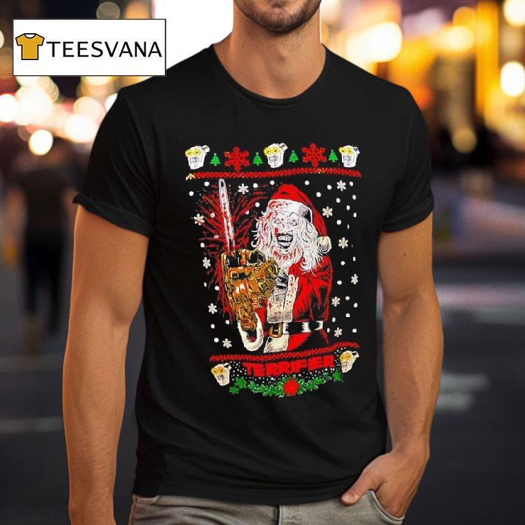 Wearable simplicity, unmatched comfort with Terrifier Christmas Santa Graphic Shirt, get ready for the most terrifying Christmas yet with the new Terrifier Santa graphic shirt! Spread fear and cheer with this bone-chilling design featuring everyone’s favorite holiday figure. Don’t miss out on this unique and spine-tingling addition to your holiday wardrobe.