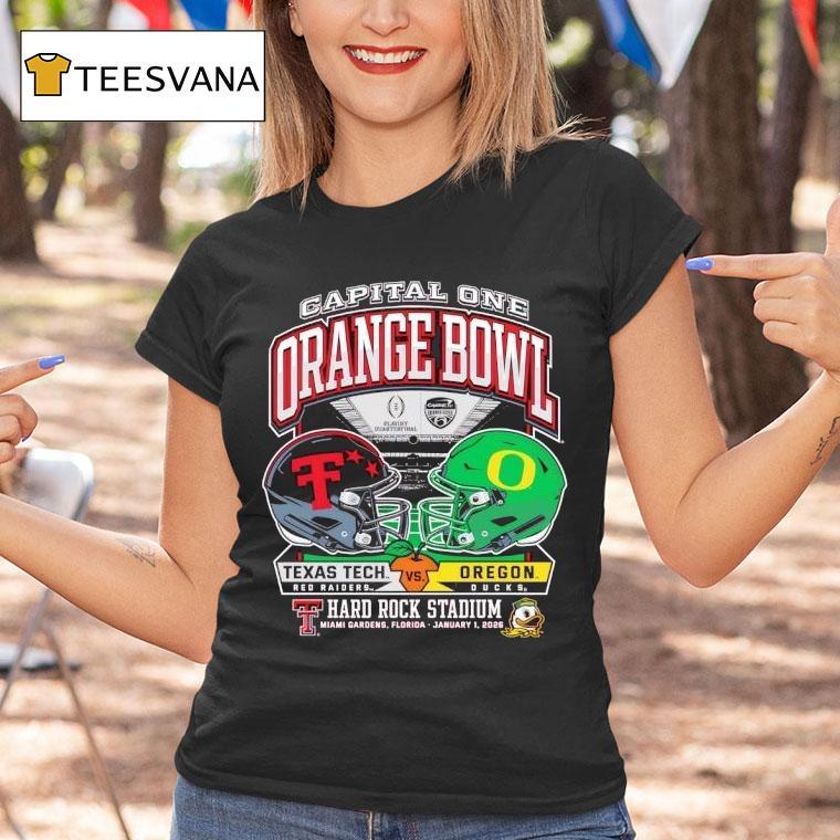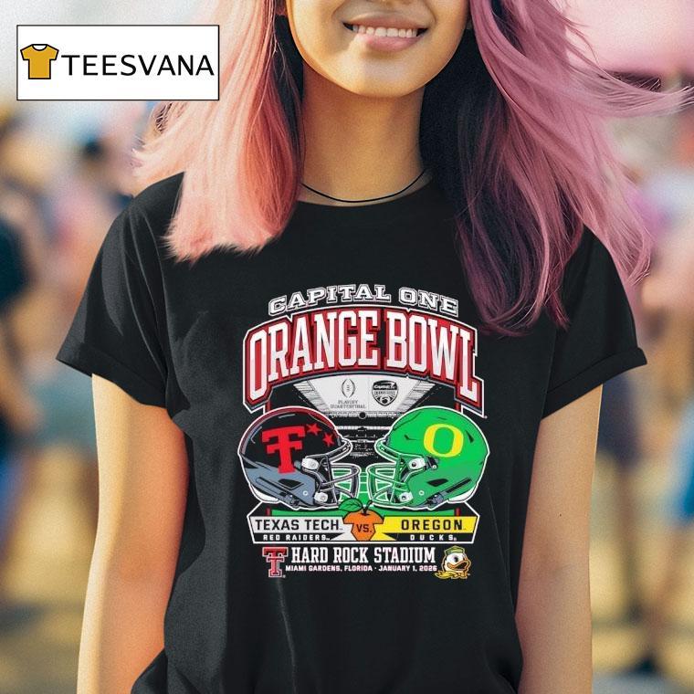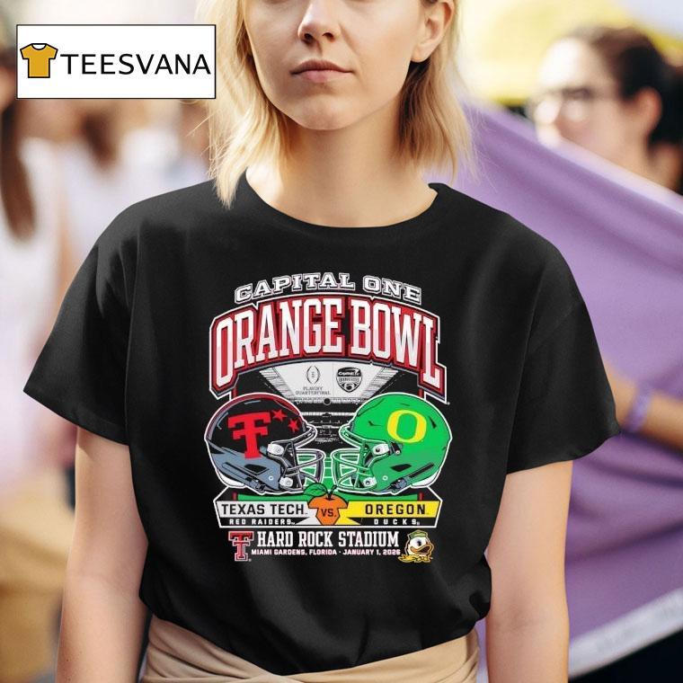 Your go-to casual choice with Texas Tech 2025 Orange Bowl – Dueling Helmets Vs. Oregon Shirt, zs Welcome to the showdown of the century at the 2025 Orange Bowl as the Texas Tech and Oregon football teams go head to head in a battle between two iconic helmets and flashy shirt designs. Who will come out on top in this epic duel? Let’s find out.