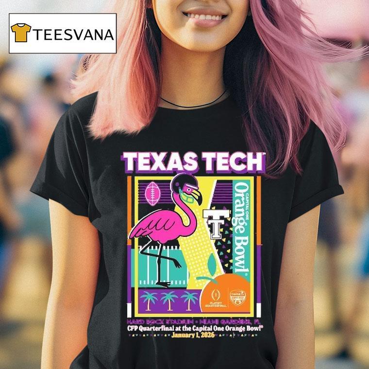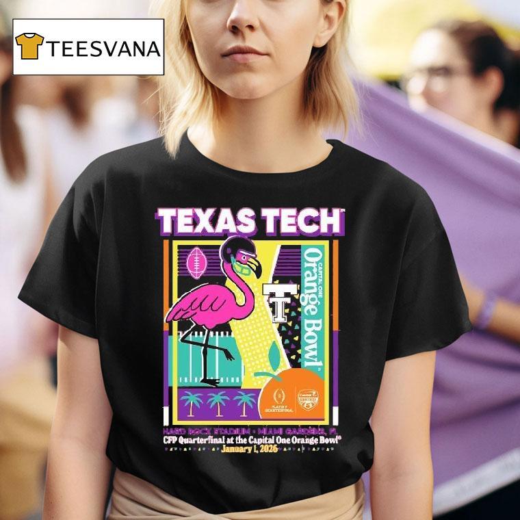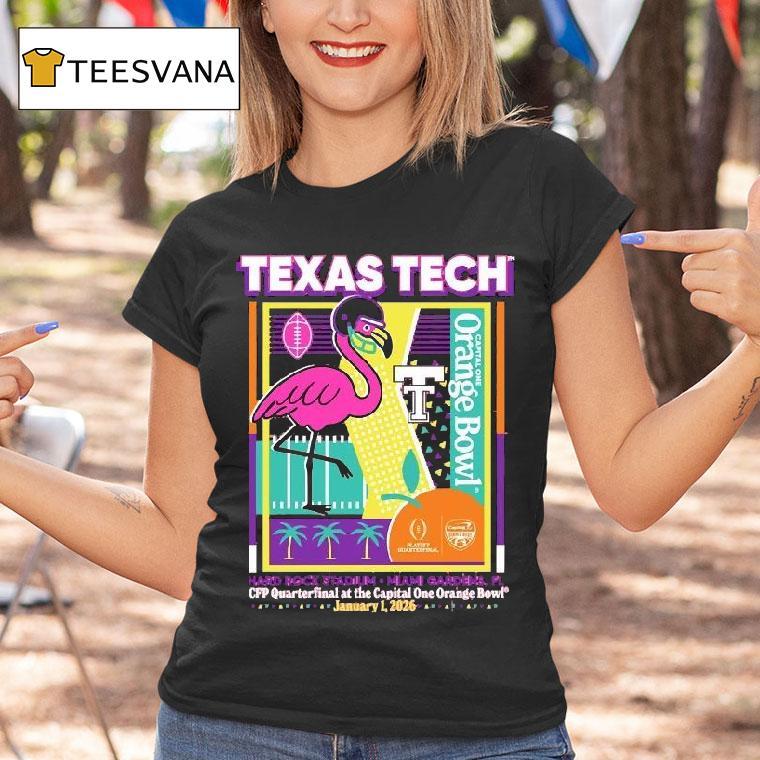 Wearable confidence booster with Texas Tech Red Raiders 2025 2026 College Football Playoff Orange Bowl Mingo Party Flamingo Shirt, get ready, Texas Tech Red Raiders fans! The future looks bright for your team as they have their sights set on the 2025 and 2026 College Football Playoff, with a potential appearance in the Orange Bowl. And what better way to celebrate than with the iconic Mingo Party Flamingo Shirt?!