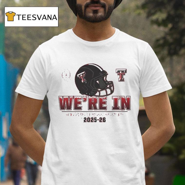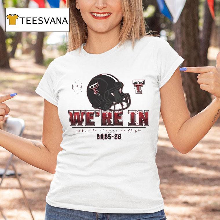 Uncomplicated style choice with Texas Tech Red Raiders College Football Playoff We’re In 2025 2026 Helmet Shirt, get ready Red Raiders fans, because Texas Tech is heading to the College Football Playoff in both 2025 and 2026! Show off your team pride with the official helmet shirt and celebrate this exciting milestone for your beloved college football team.