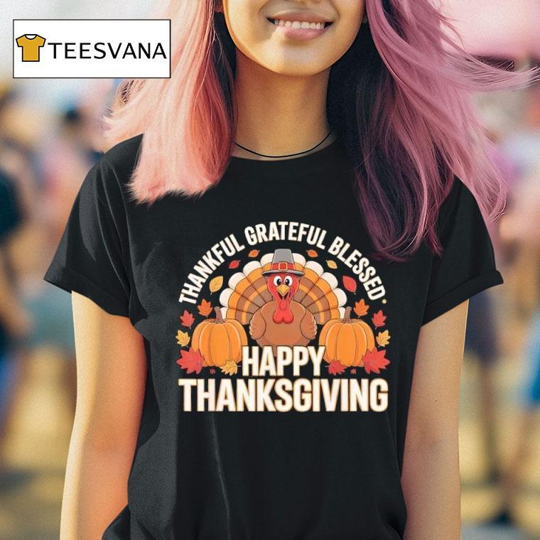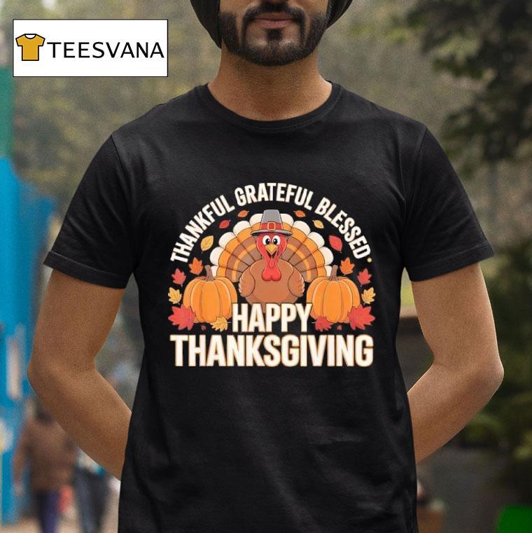 Classic tee, modern twist with Thankful Grateful Blessed Happy Thanksgiving Pumpkin Turkey Shirt, as the leaves change and the air turns crisp, we are reminded to reflect on all that we are thankful for. Show your appreciation this Thanksgiving with our festive pumpkin and turkey shirt. Let gratitude and happiness shine through as we gather with loved ones to celebrate.