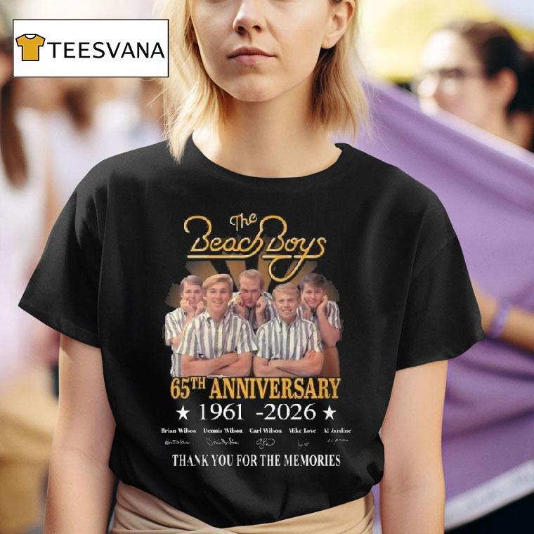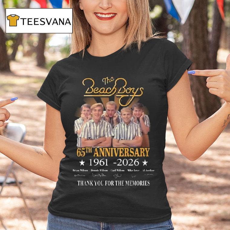 Elevate your casual look with The Beach Boys 65th Anniversary 1961-2026 Signatures Thank You For The Memories Shirt, celebrate 65 years of The Beach Boys with their limited edition anniversary shirt! Featuring the signatures of the iconic band members from 1961-2026, this shirt is a perfect way to thank them for the unforgettable memories and timeless music they have given us. Don’t miss out on this commemorative piece!