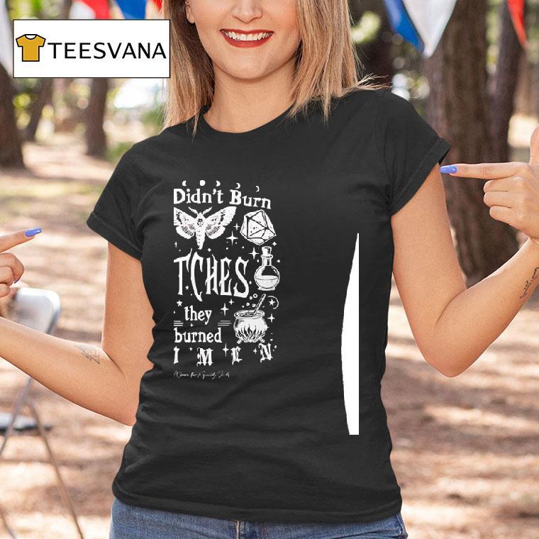 Classic charm, modern edge with They Didn’t Burn Witches They Burned Women Ladies Shirt, in the dark days of witch hunts, women were often unjustly accused and burned at the stake. But as society progresses, we remember their plight with the “They Didn’t Burn Witches, They Burned Women” ladies shirt. A powerful reminder of the oppression and strength of the female spirit.