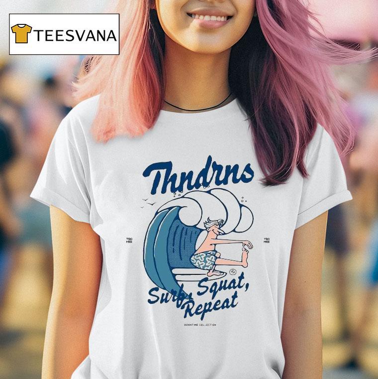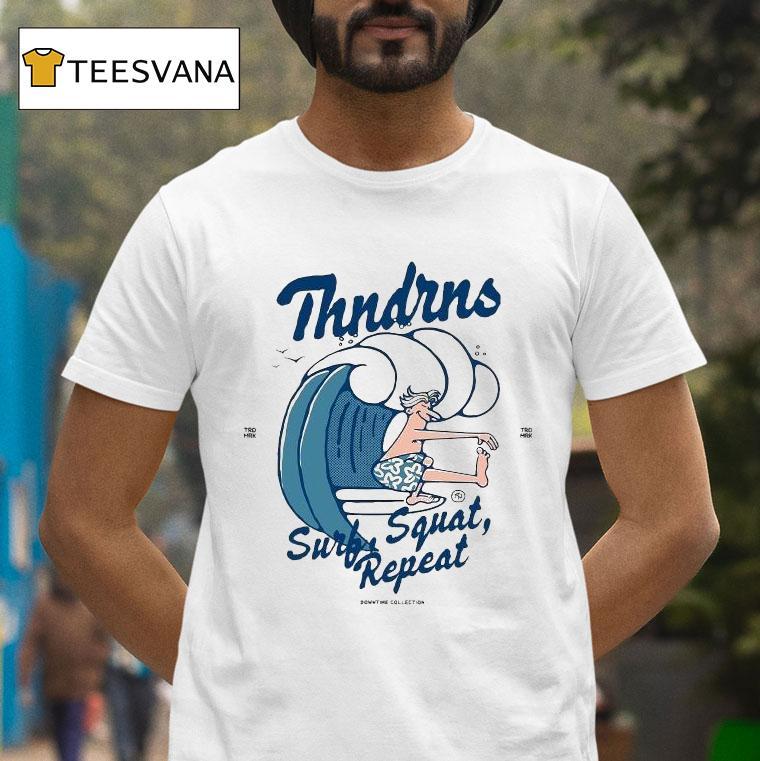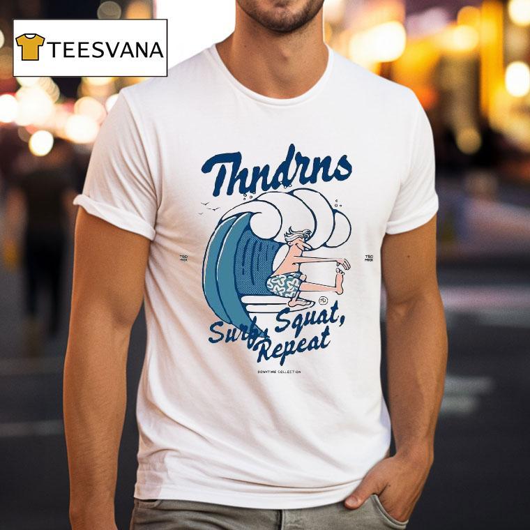 Style that speaks volumes with Thundernoise Surf, Squat, Repeat Shirt, “Ride the waves in style with the Thundernoise Surf, Squat, Repeat Shirt. Made for surfers, this shirt features a trendy design that will have you standing out on the beach. Whether hitting the waves or lounging on the sand, this shirt is a must-have for any surf lover.”