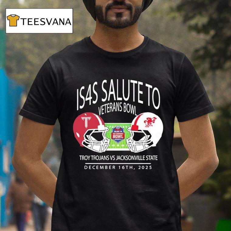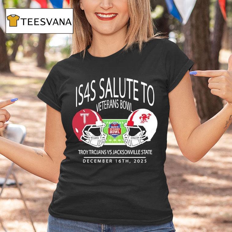 Casual flair, all occasions with Troy Trojans Football Vs Jacksonville State Gamecocks Football Is4s Salute To Veterans Bowl At Cramton Bowl On December 16 2025 Helmet Shirt, the Cramton Bowl will be filled with excitement on December 16, 2025 as the Troy Trojans Football team takes on the Jacksonville State Gamecocks Football team in the highly anticipated IS4S Salute to Veterans Bowl. Fans can expect a thrilling matchup as both teams battle it out on the field wearing special helmets and shirts to honor our veterans.