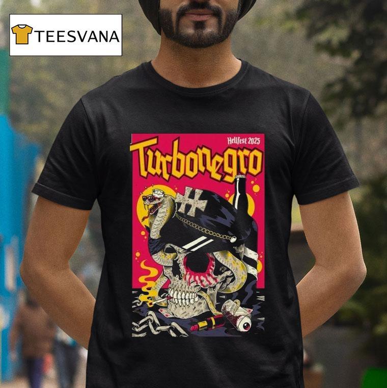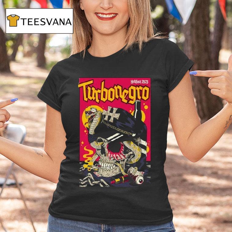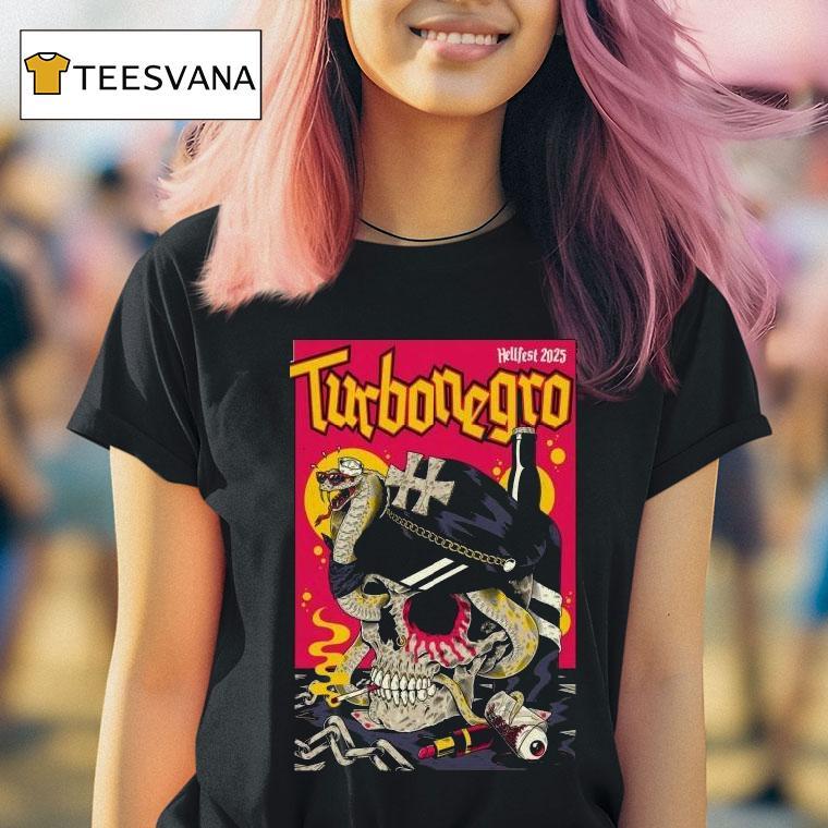 Effortless style, pure simplicity with Turbonegro Hellfest 150 2025 Skull Shirt, experience the ultimate fusion of heavy music and edgy fashion with the Turbonegro Hellfest 150 2025 Skull Shirt. This limited edition piece boasts a bold design featuring the iconic skull emblem and commemorates the legendary performance at Hellfest in 2025. Prepare to unleash your inner rockstar with this must-have shirt.