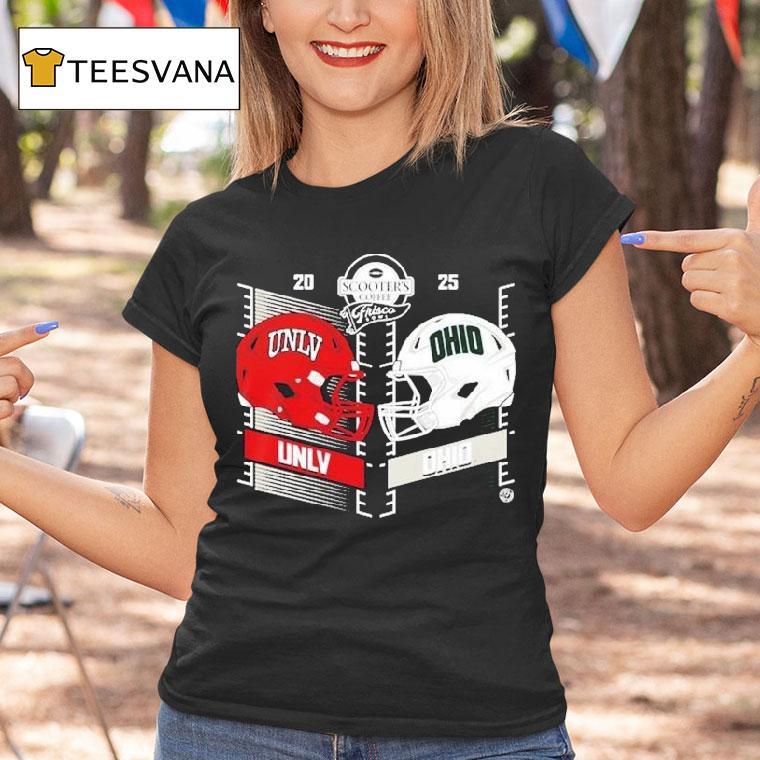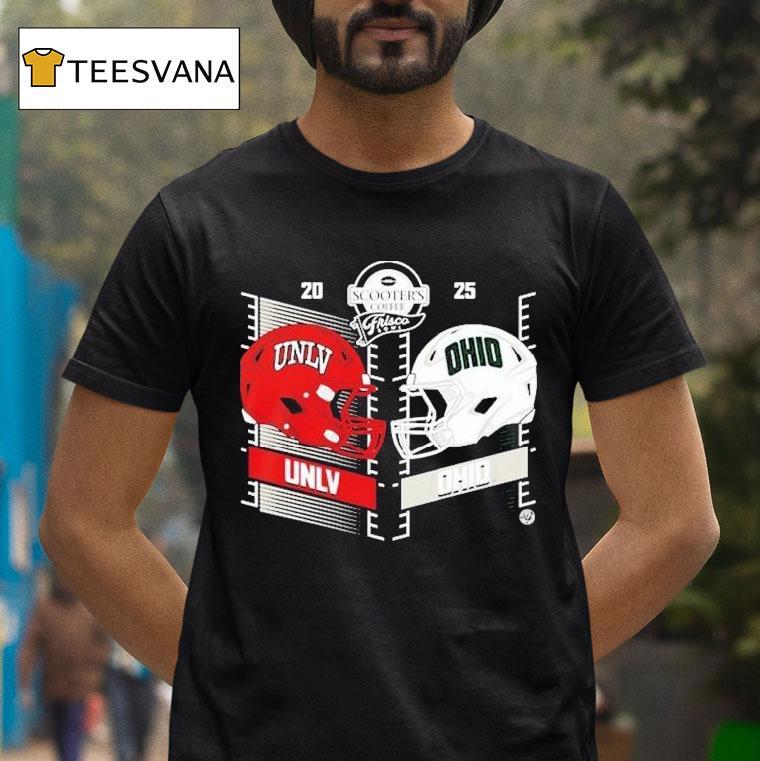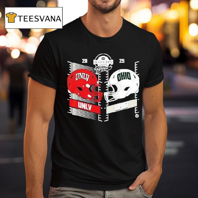 Staple piece, endless possibilities with Unlv Rebels Vs Ohio Bobcats Scooter’s Coffee Frisco Bowl 2025 Helmet Match Ford Center At The Star In Frisco Tx December 23 2025 Shirt, get ready for an epic showdown as the UNLV Rebels take on the Ohio Bobcats in the Scooter’s Coffee Frisco Bowl 2025! This highly anticipated helmet match will take place at the Ford Center at the Star in Frisco, TX on December 23, 2025. Don’t miss out on the action, grab your limited edition shirt now!
