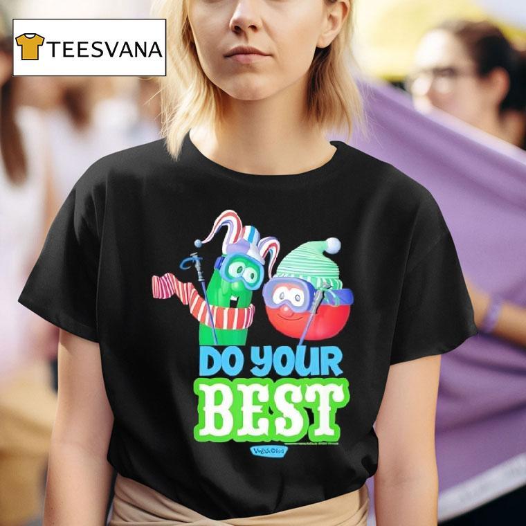 Essential wardrobe staple with Veggietales Do Your Best Larry The Cucumber And Bob The Tomato Shirt, “Are you a fan of the beloved Veggietales? Show your enthusiasm with the iconic Do Your Best Larry the Cucumber and Bob the Tomato shirt. Perfect for any Veggietales lover, this shirt is a fun and stylish way to share the values of this beloved animated series.”