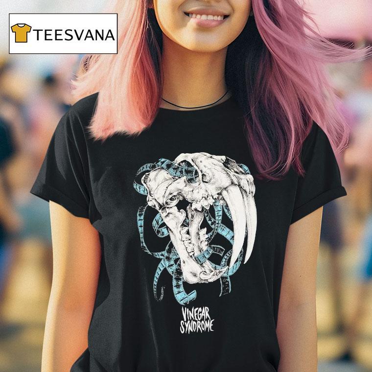 The perfect blank canvas with Vinegar Syndrome Saber-toothed Tiger Skull Shirt, reveal your wild side with the Vinegar Syndrome Saber-toothed Tiger Skull Shirt. This edgy and unique design features a fierce saber-toothed tiger skull, adding a touch of prehistoric flair to your wardrobe. Embrace your primal instincts and stand out from the crowd with this one-of-a-kind shirt.
