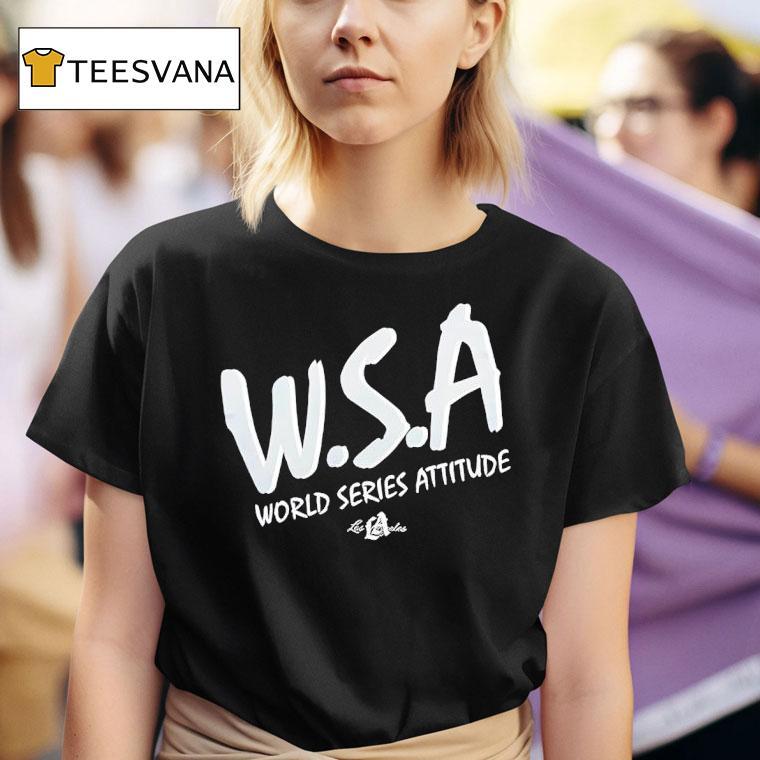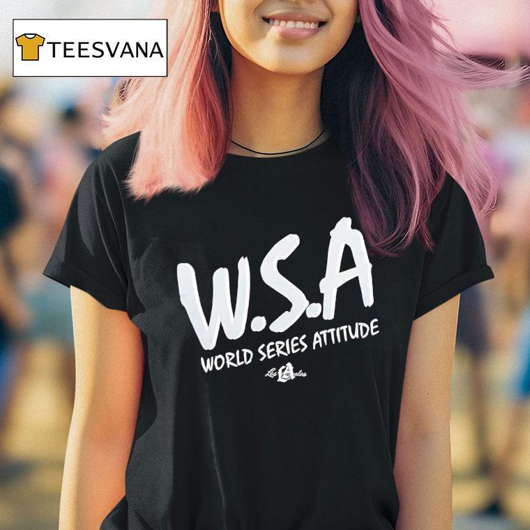 Relaxed elegance, everyday with W S A World Series Attitude Los Angeles Dodgers Shirt, get ready to show your support for the Los Angeles Dodgers with the ultimate display of W S A World Series attitude – the official team shirt! This bold and stylish shirt is a must-have for any true fan looking to represent their team in style.