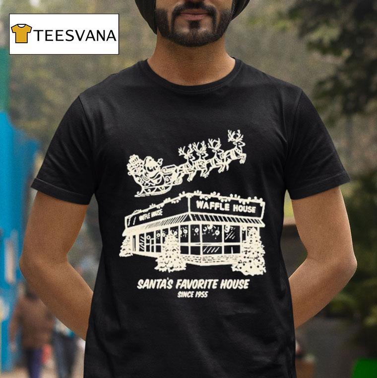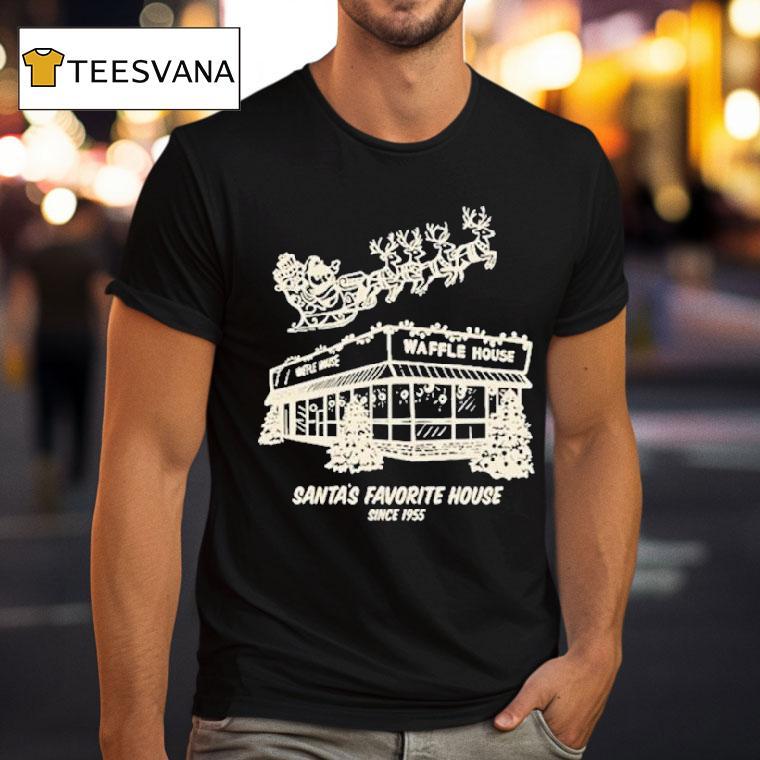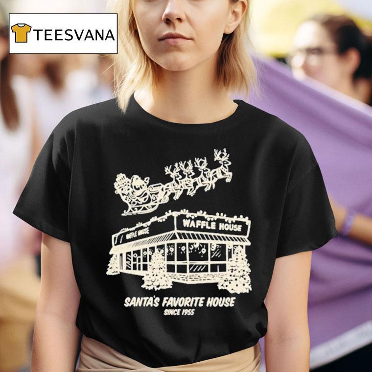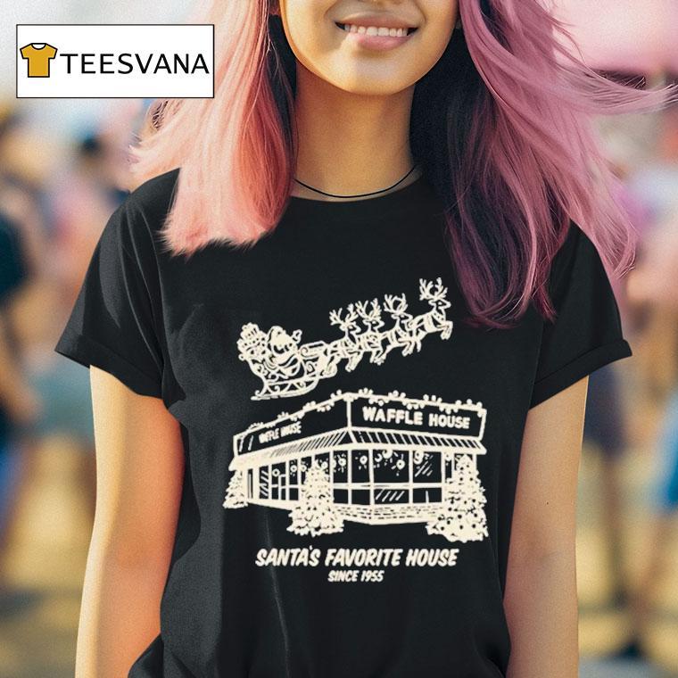 The perfect blank canvas with Waffle House Santa’s Favorite House Since 1955 Christmas Shirt, get ready to spread some holiday cheer with the iconic Waffle House Santa’s Favorite House Since 1955 Christmas Shirt. Showcasing the perfect combination of festive spirit and classic diner charm, this shirt is a must-have for any fan of the beloved restaurant chain.