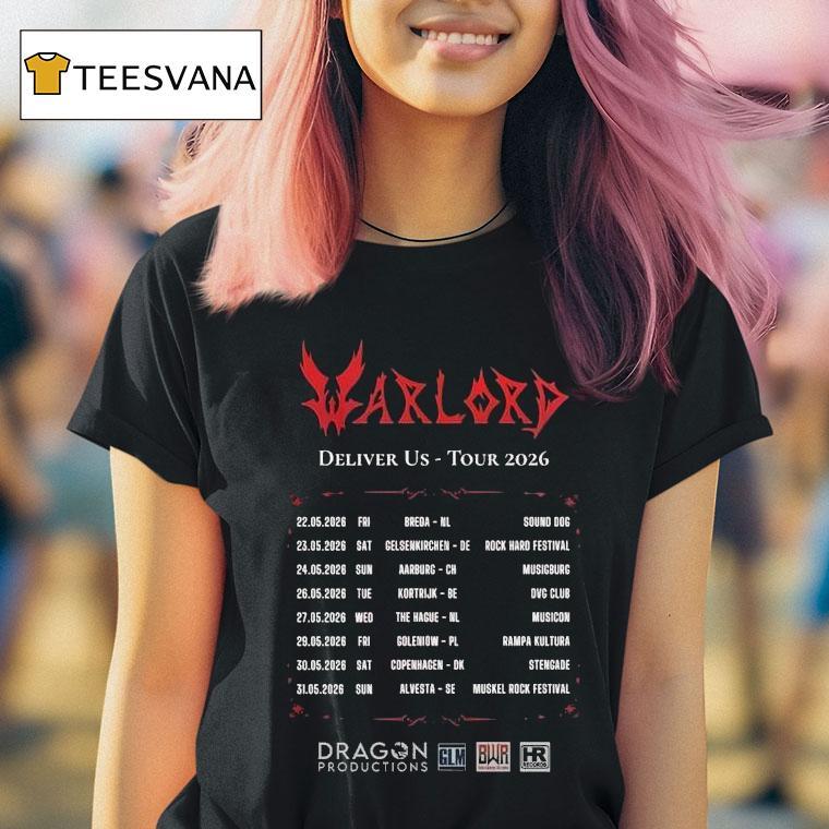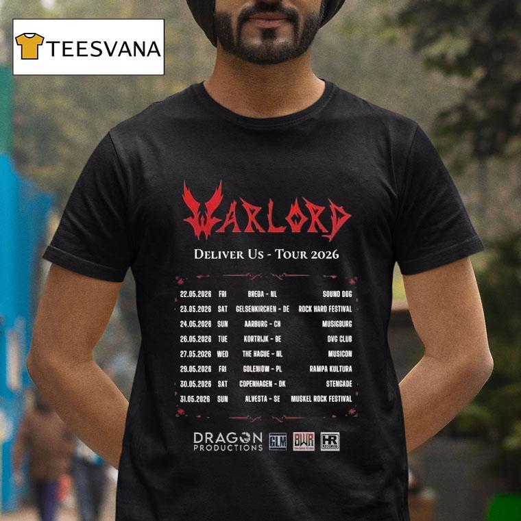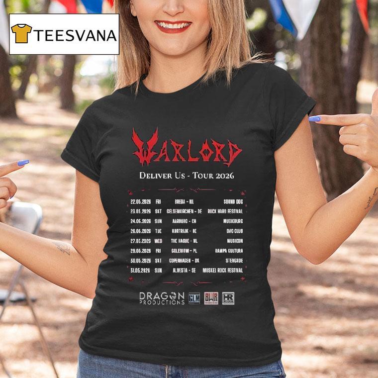 Casual chic, timeless appeal with Warlord Deliver Us Europe 2026 Tour Dates Shirt, “Attention all warriors and fans of Warlord! Get ready to conquer Europe in 2026 as the band announces their highly anticipated Deliver Us Europe Tour. And what better way to commemorate this epic journey than with the exclusive limited edition tour dates shirt. Don’t miss out on this fierce fashion statement!”